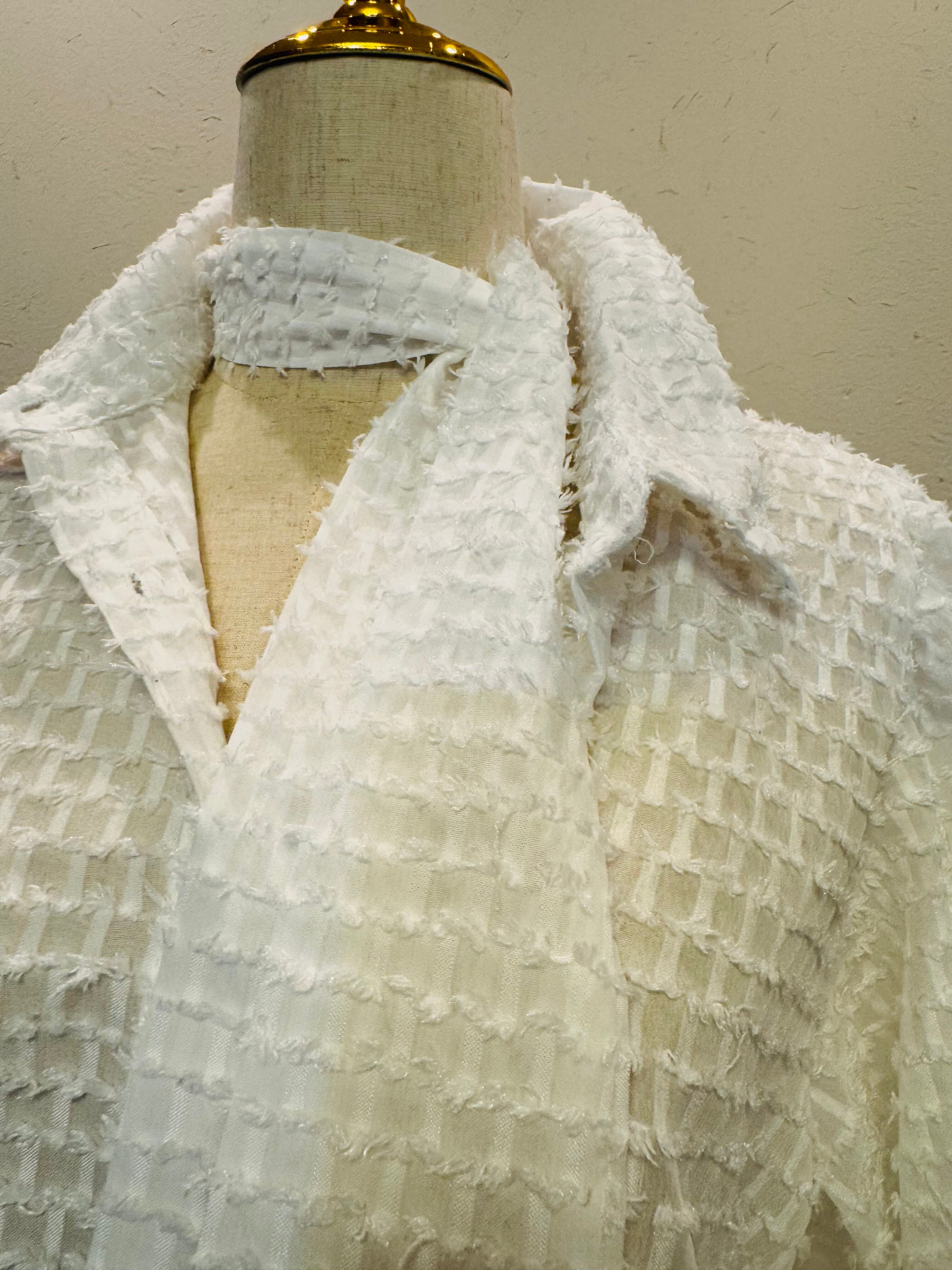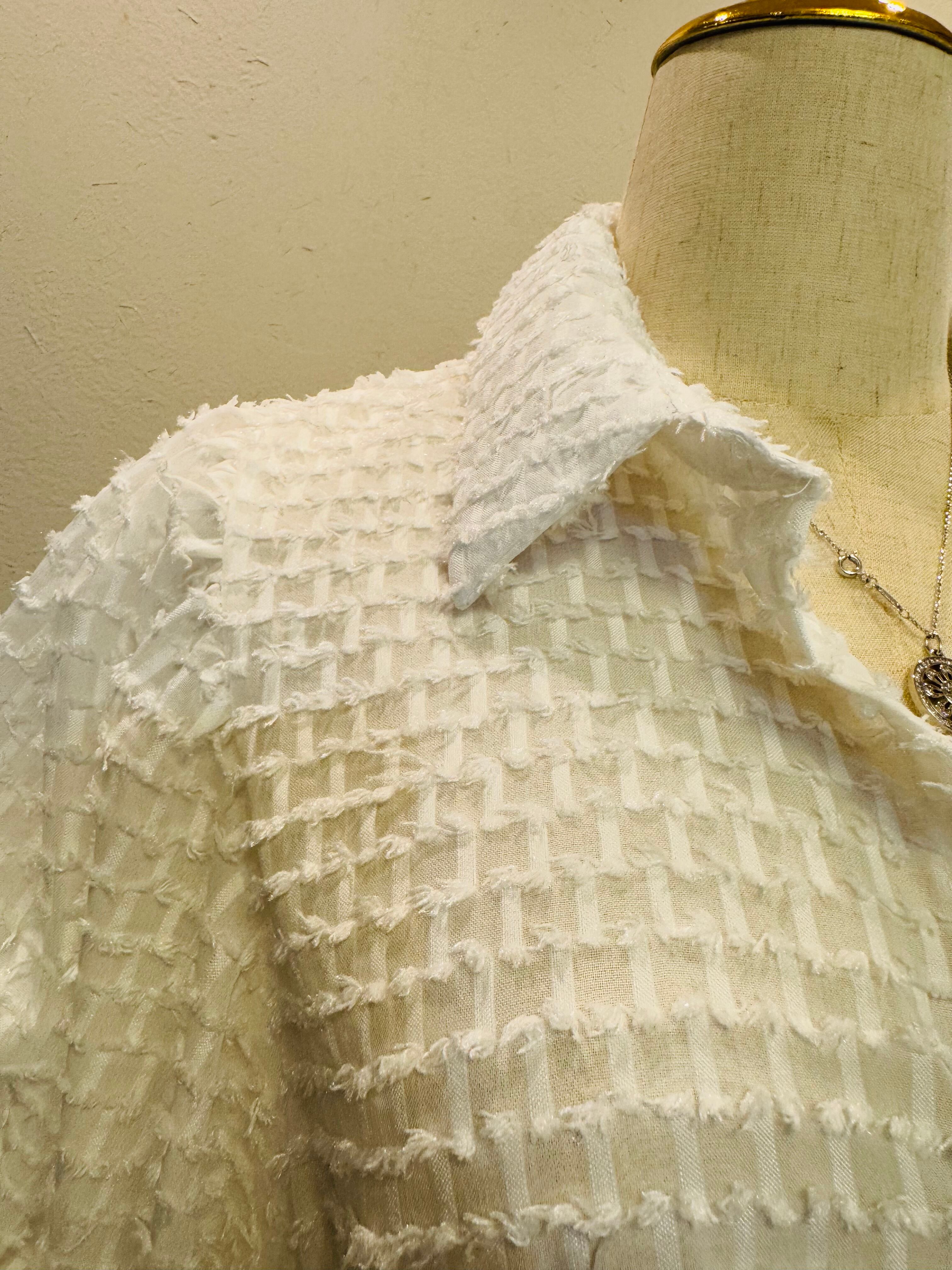 • 立体的なテクスチャーが目立つ高級感のあるホワイトブラウス。