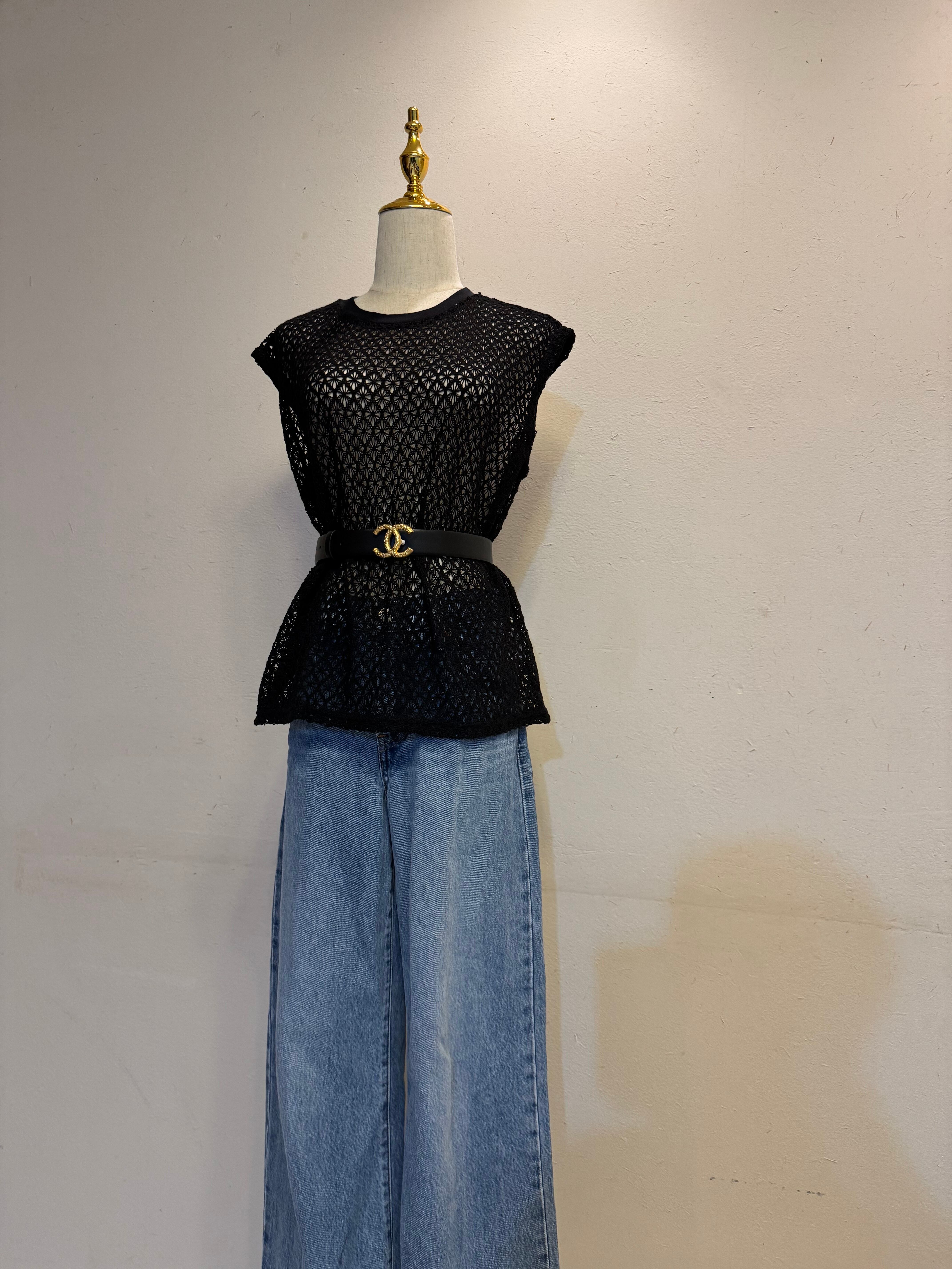 上品なブラックカラーのフラワーパンチングレース素材を使用したセットアップです。