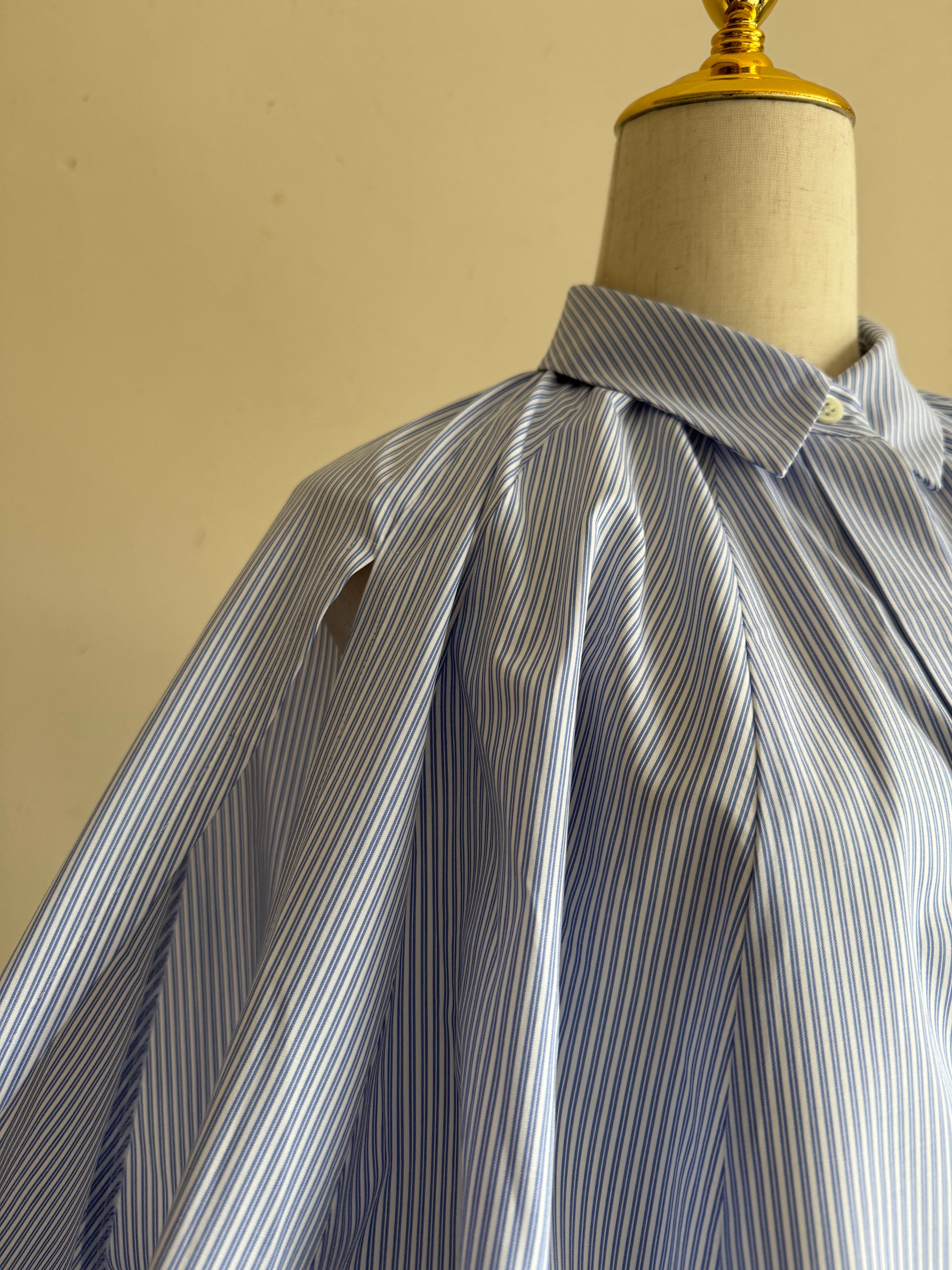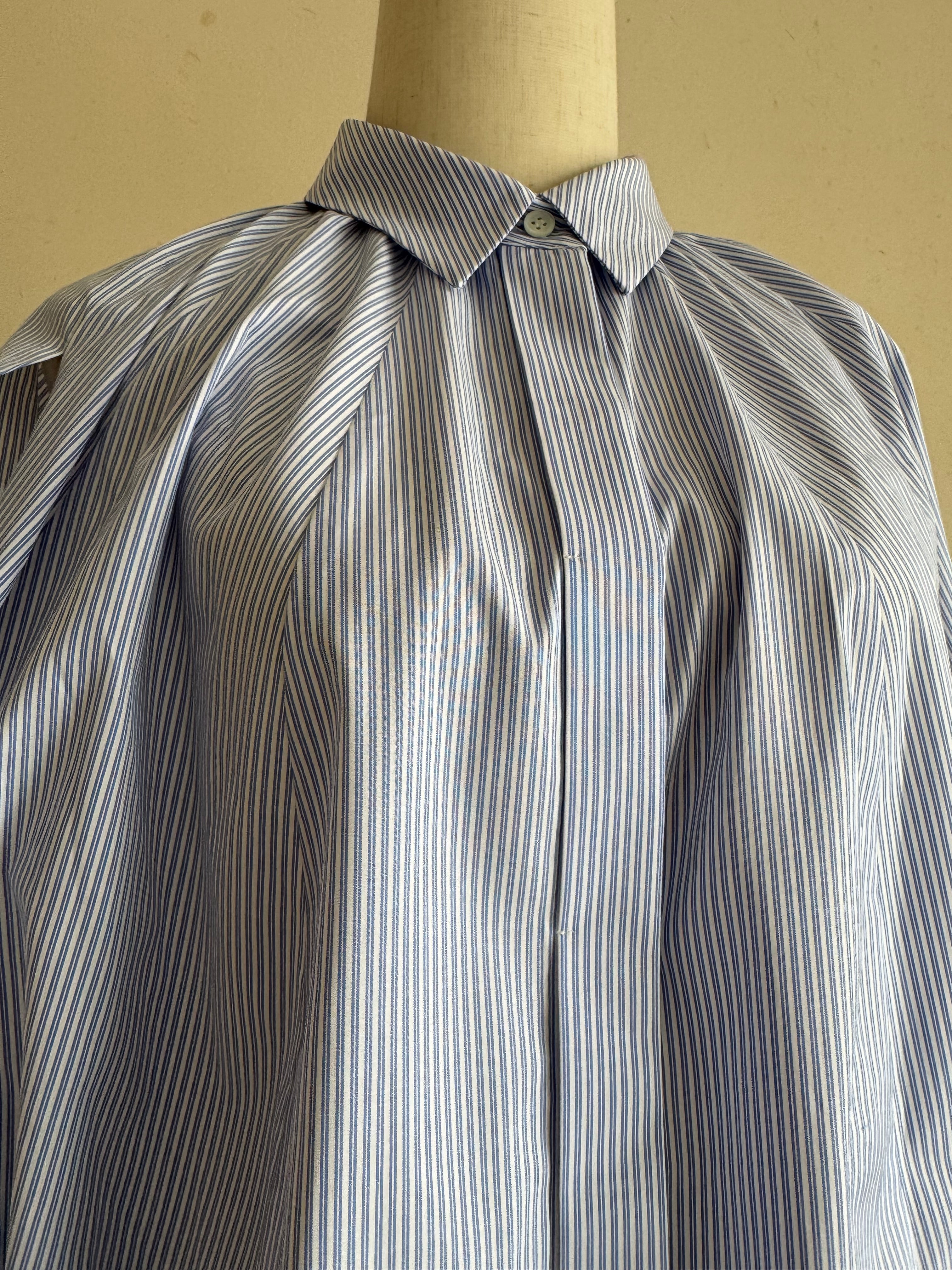 볼륨감 있는 셔링 디테일이 돋보이는 스트라이프 셔츠입니다.