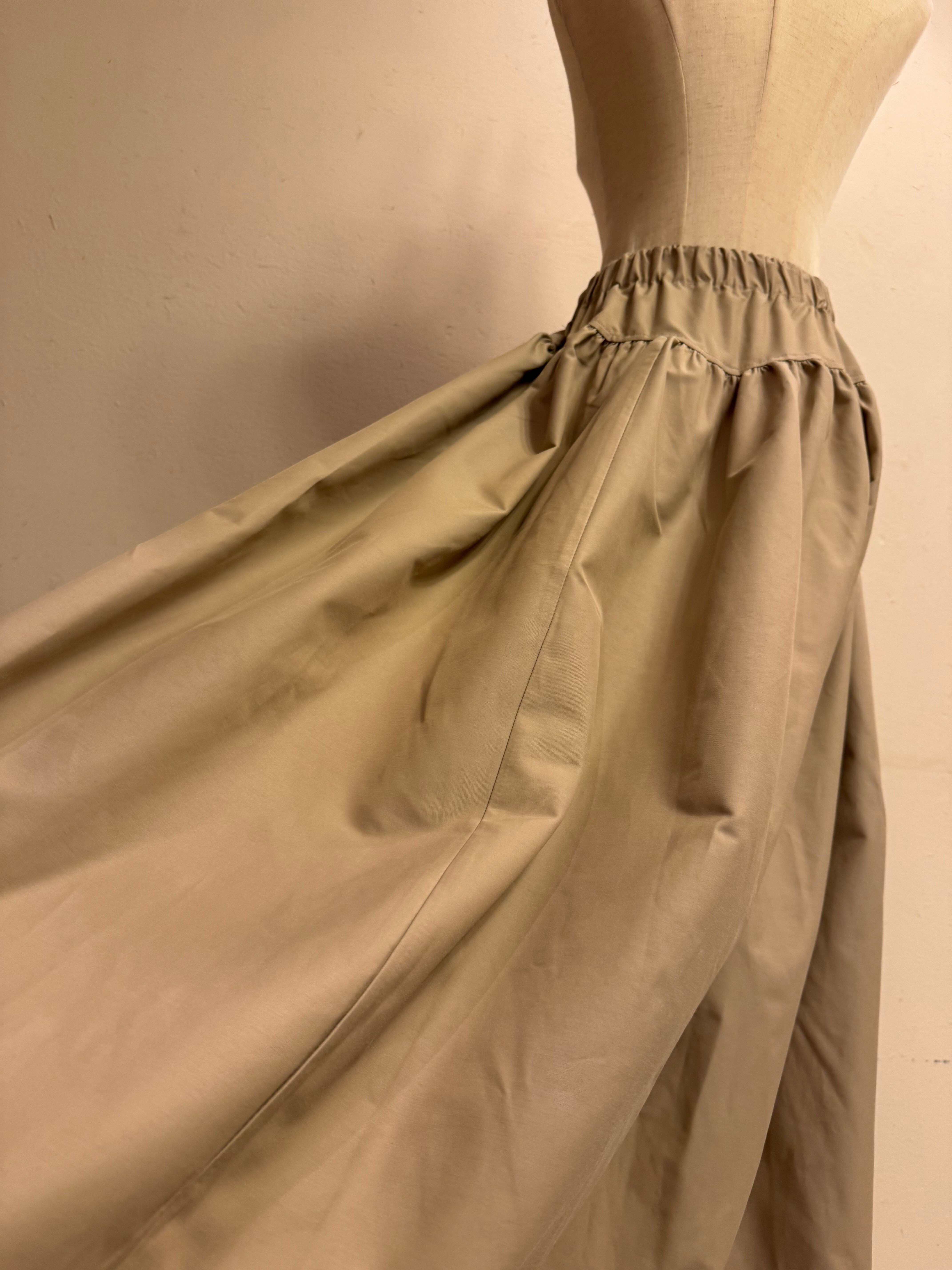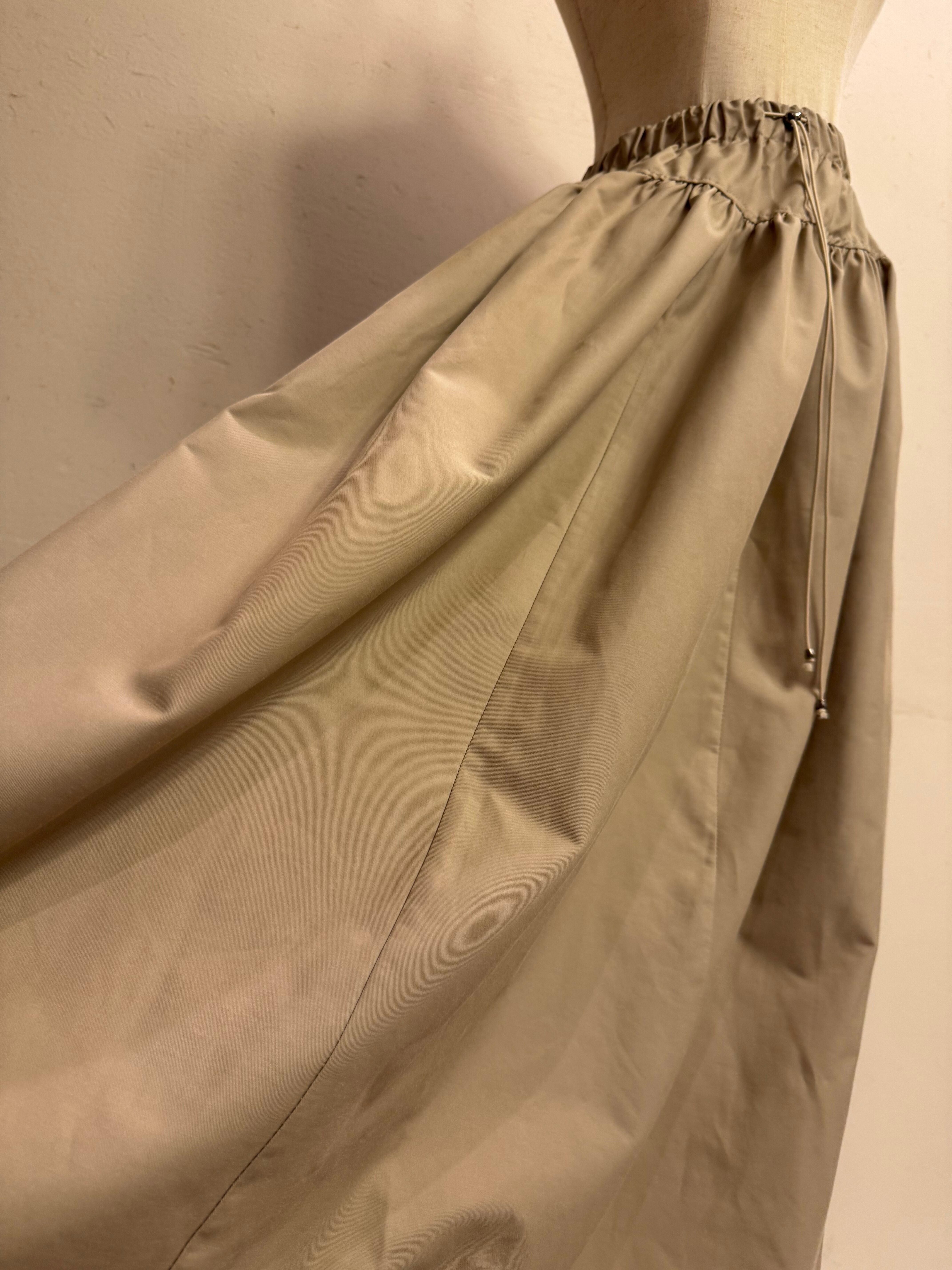 「ウエストドローストリング フレアロングスカート(ベージュ)」