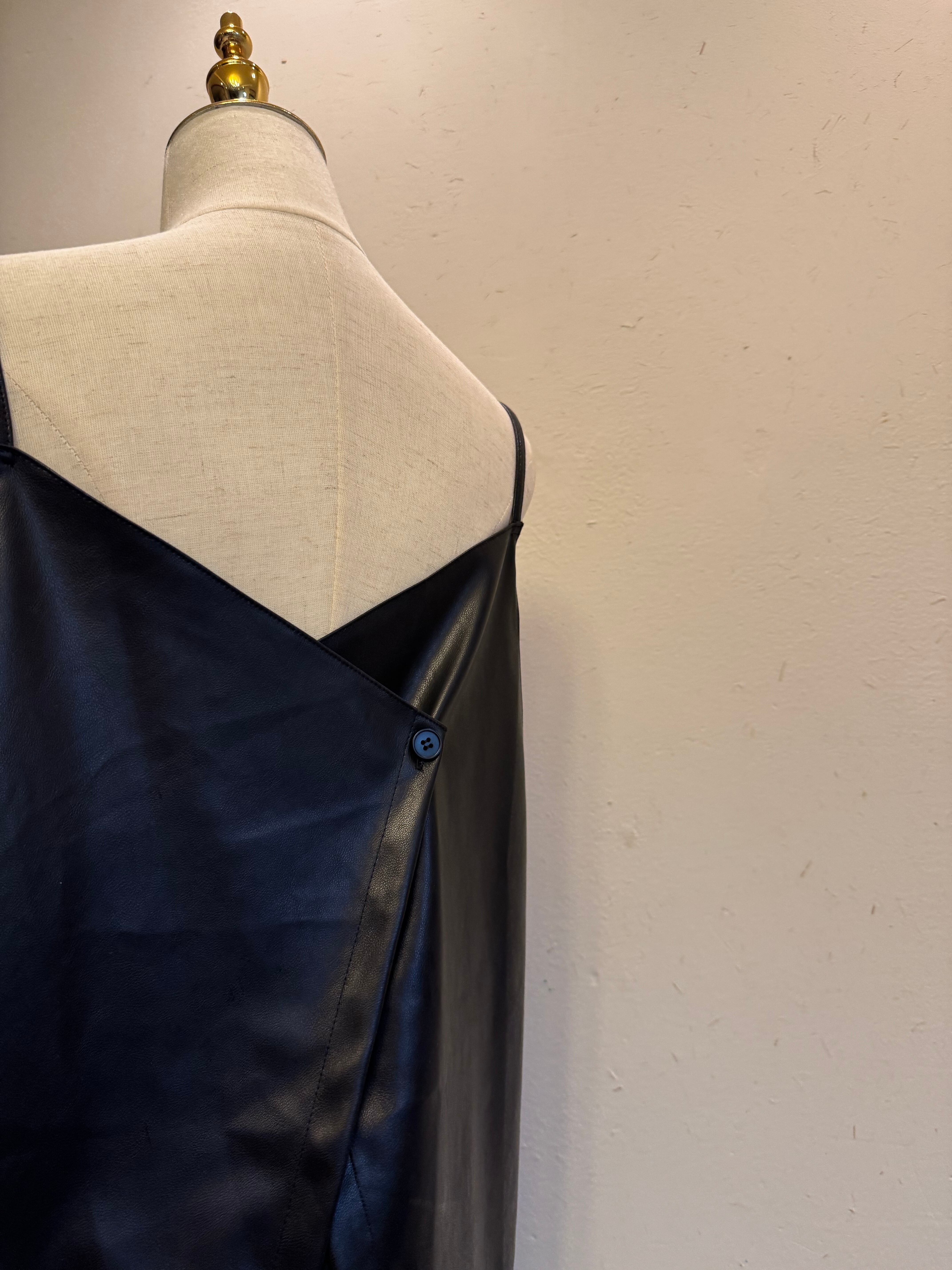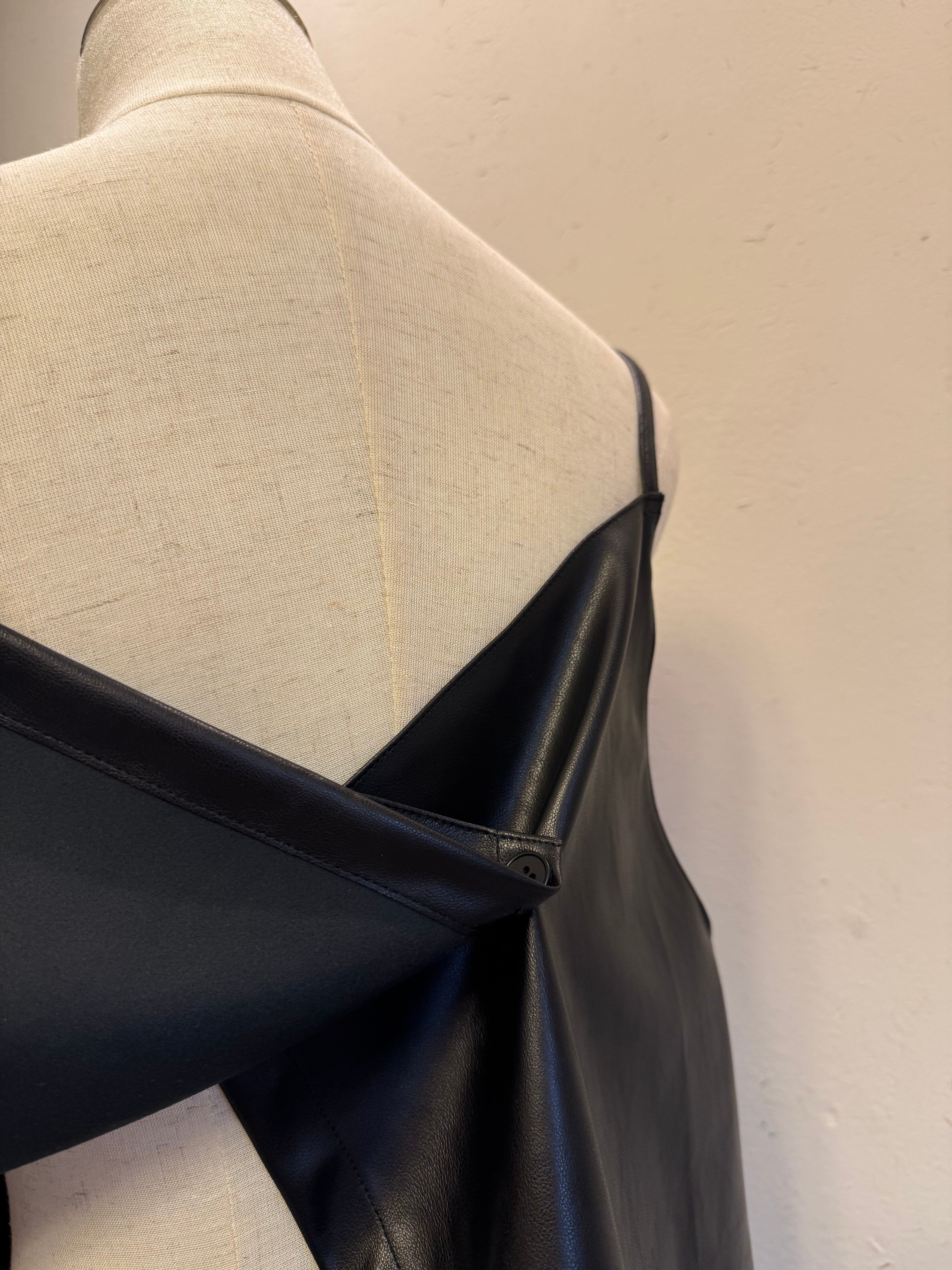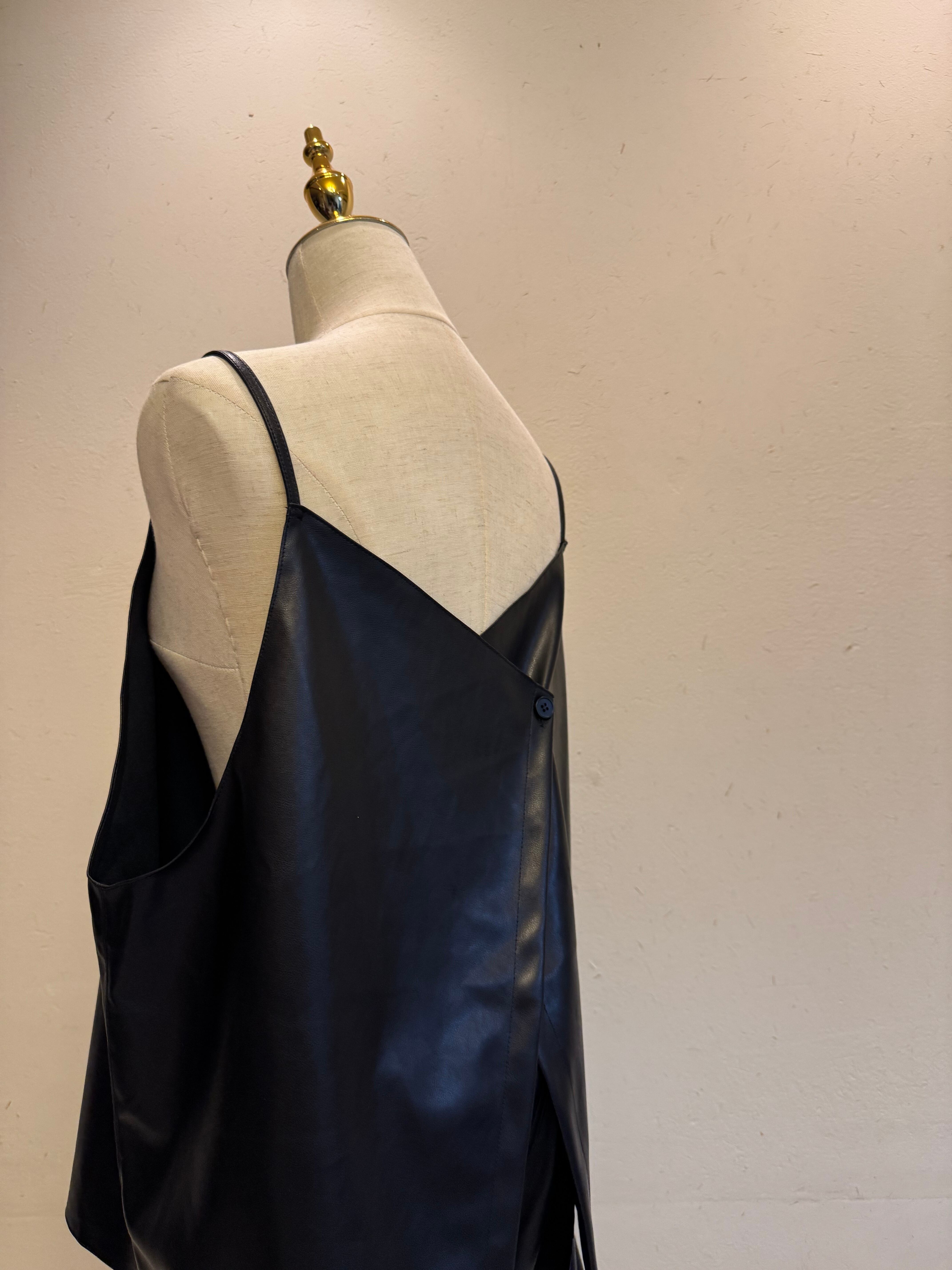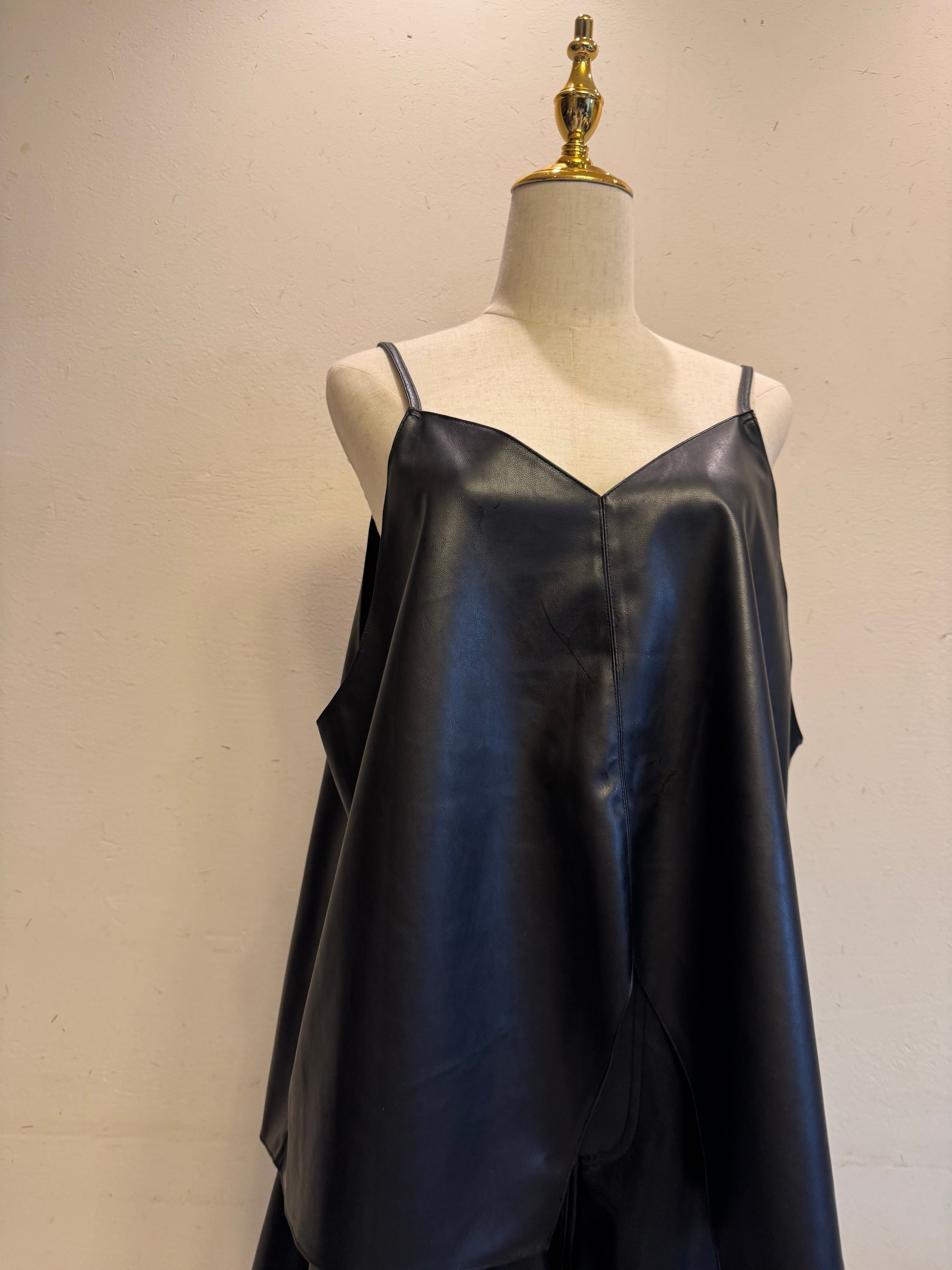 バッククロスディテール ブラックレザー スリーブレスタップ