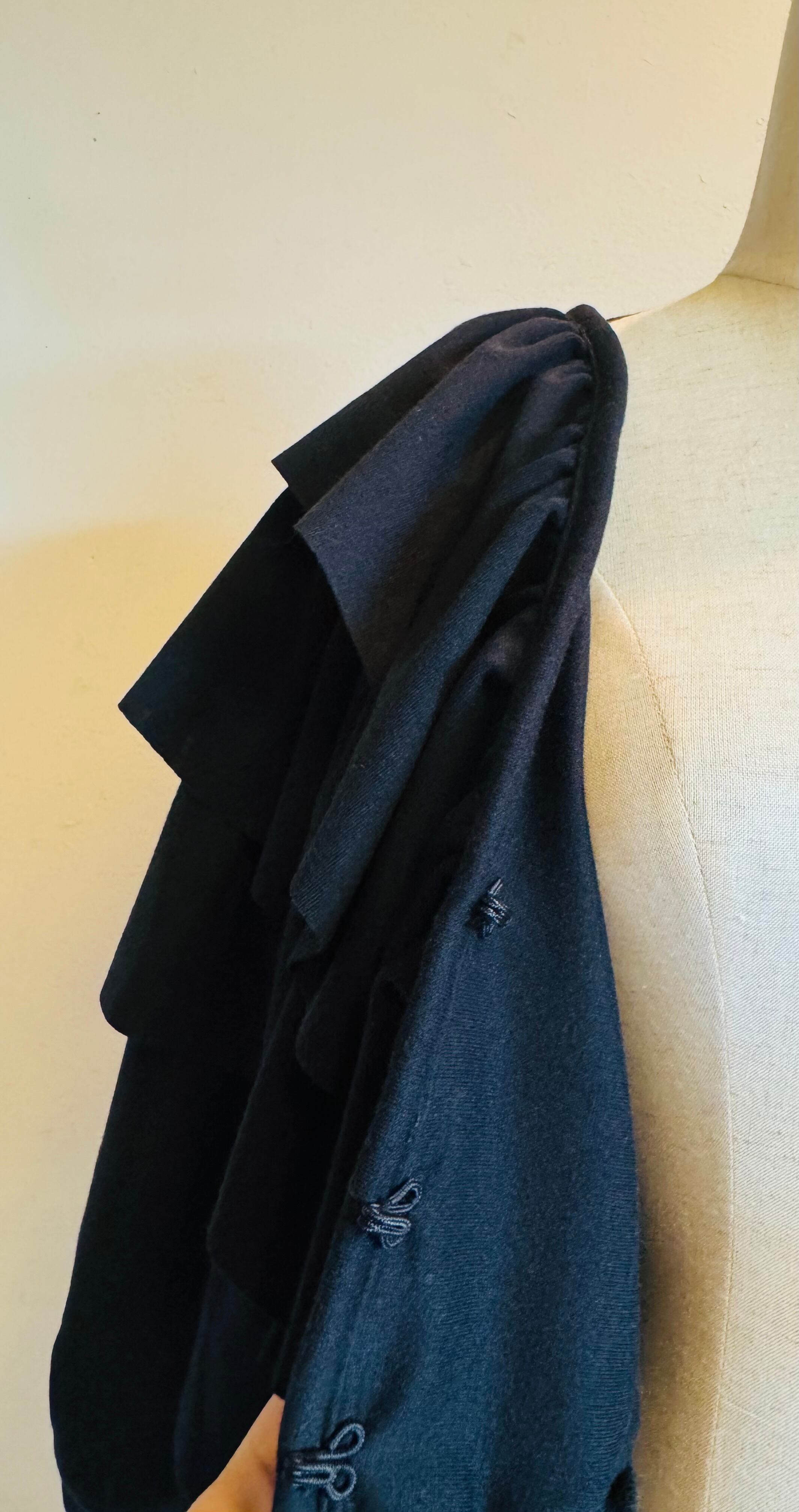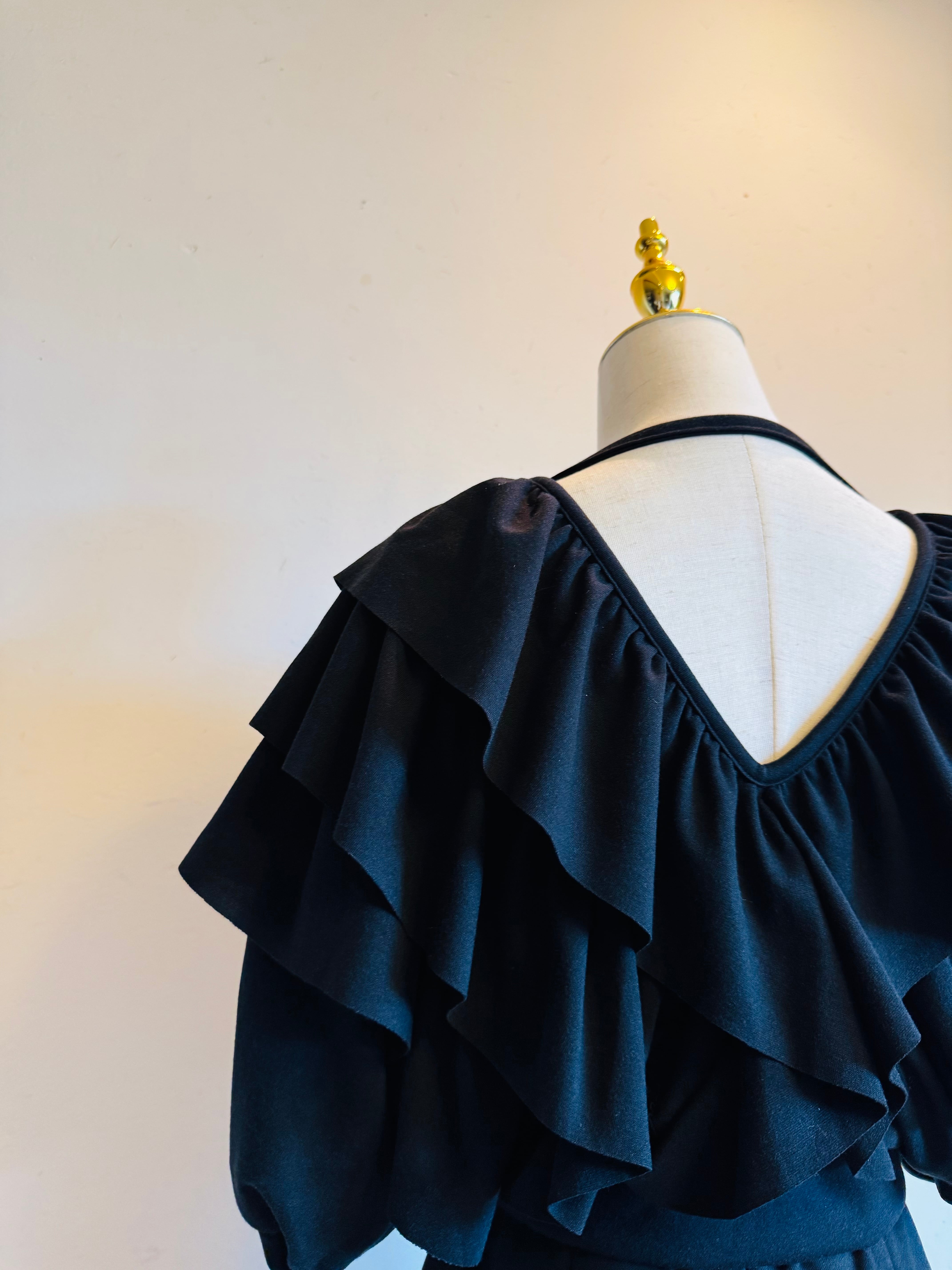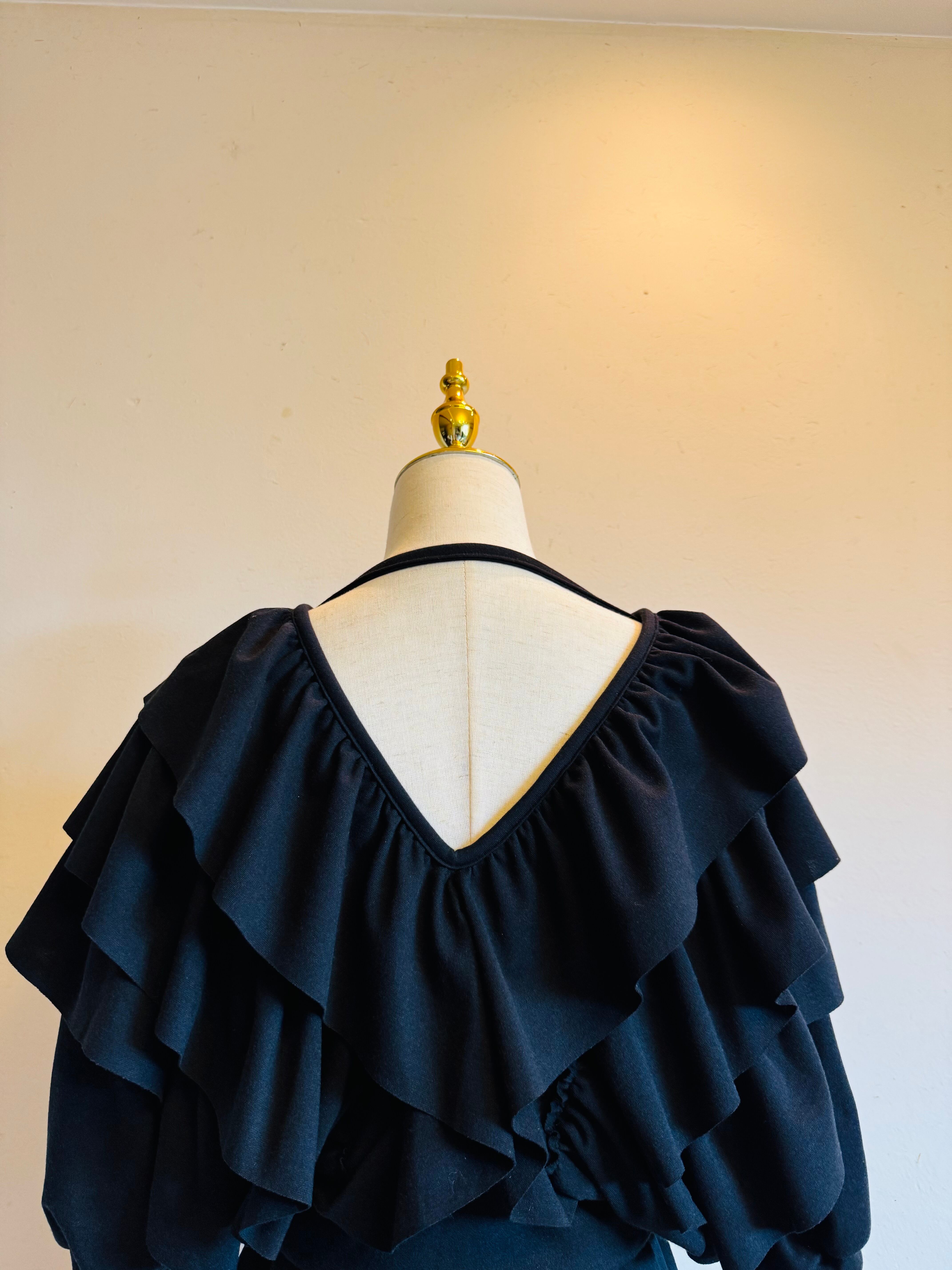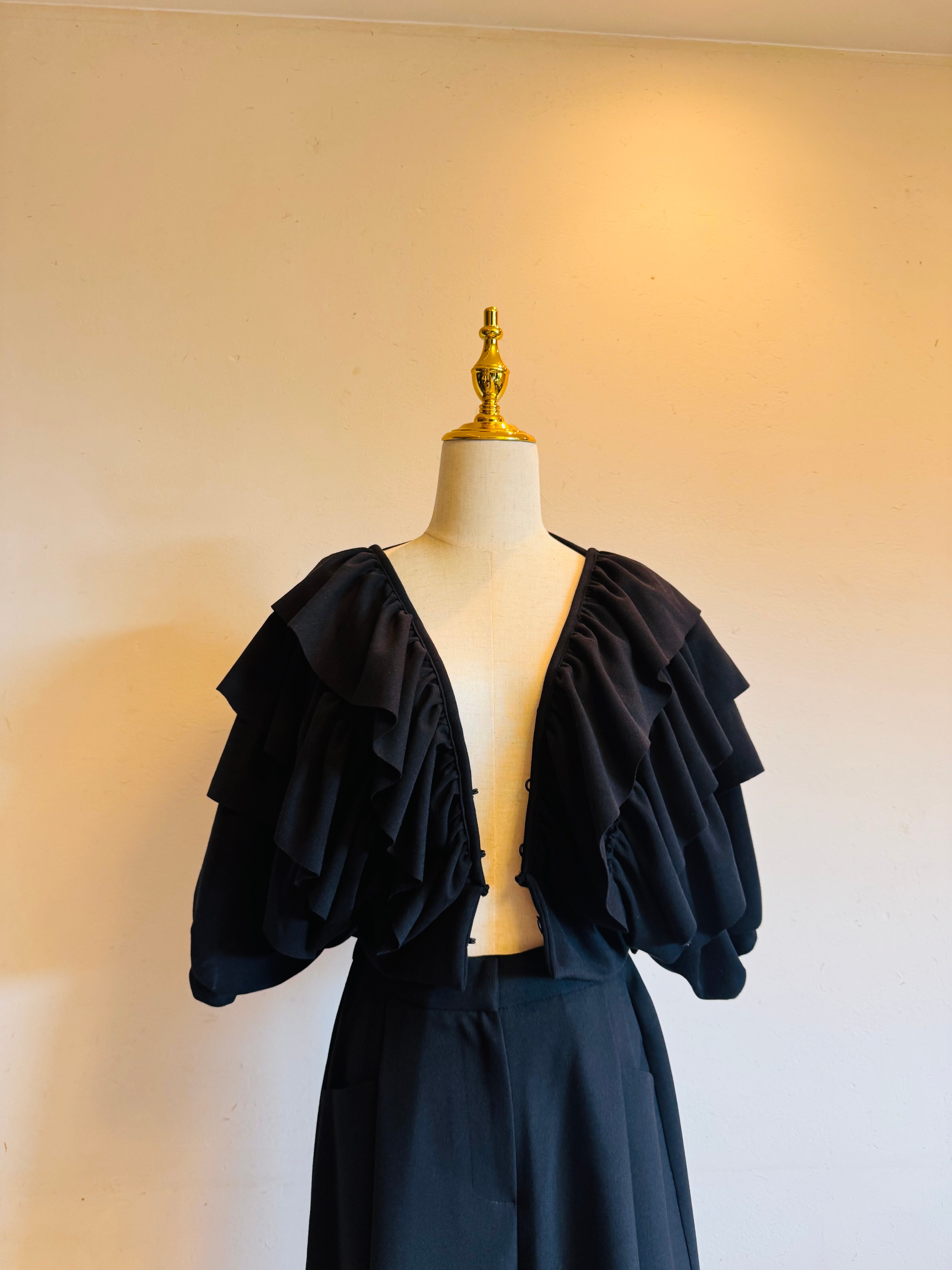 ドラマチックな印象を与えるブラックのラッフルレイヤードブラウスです。