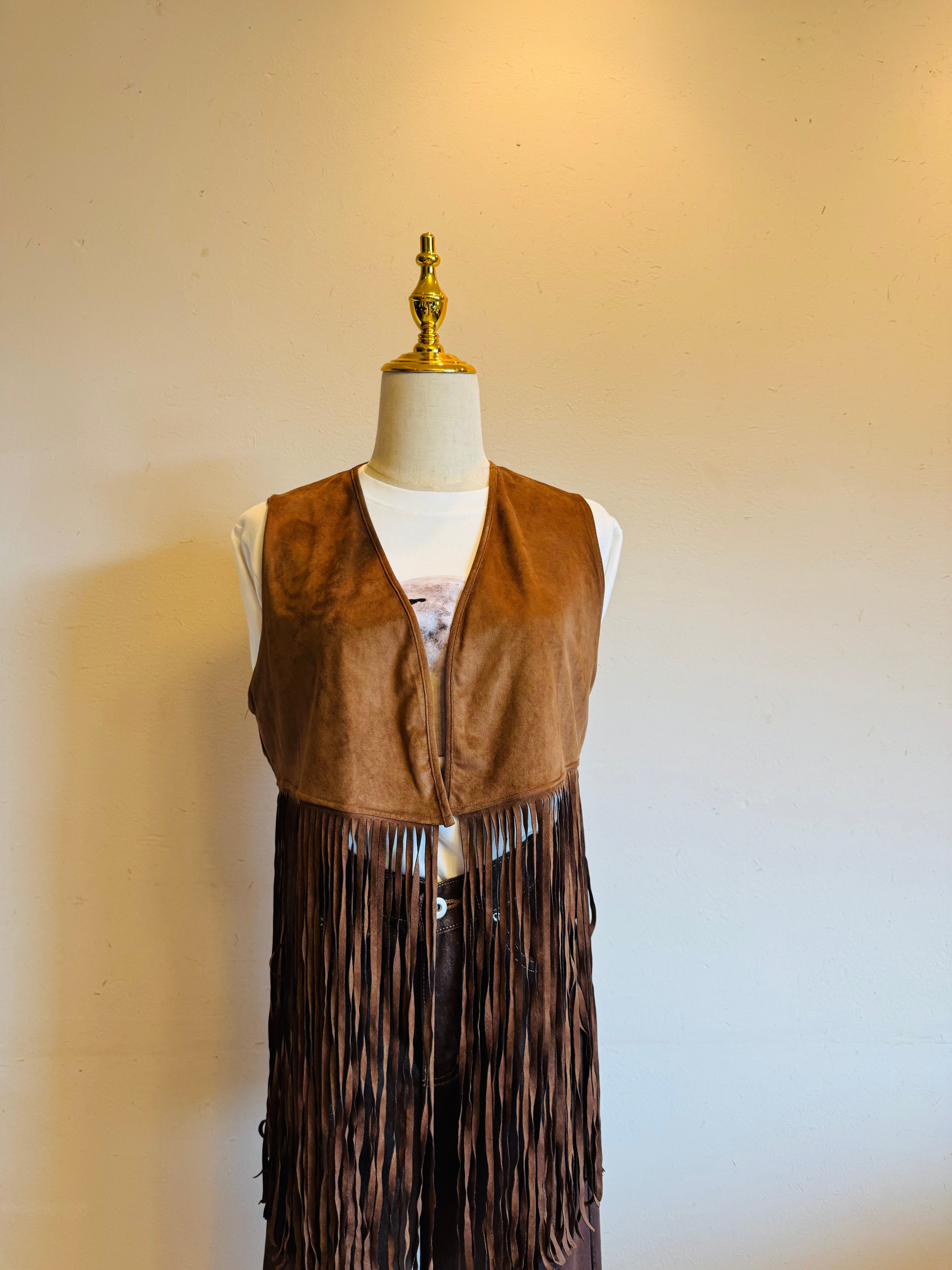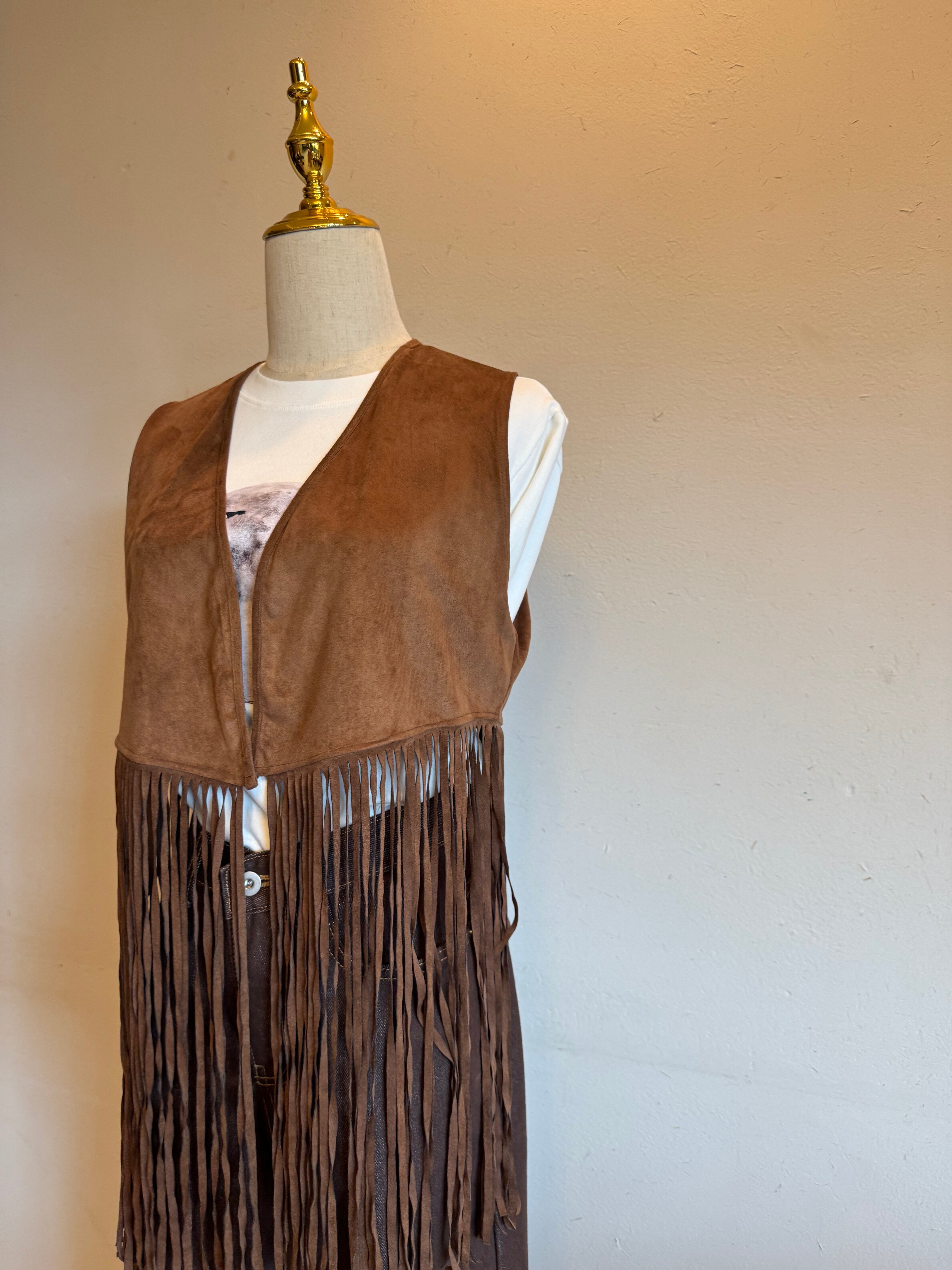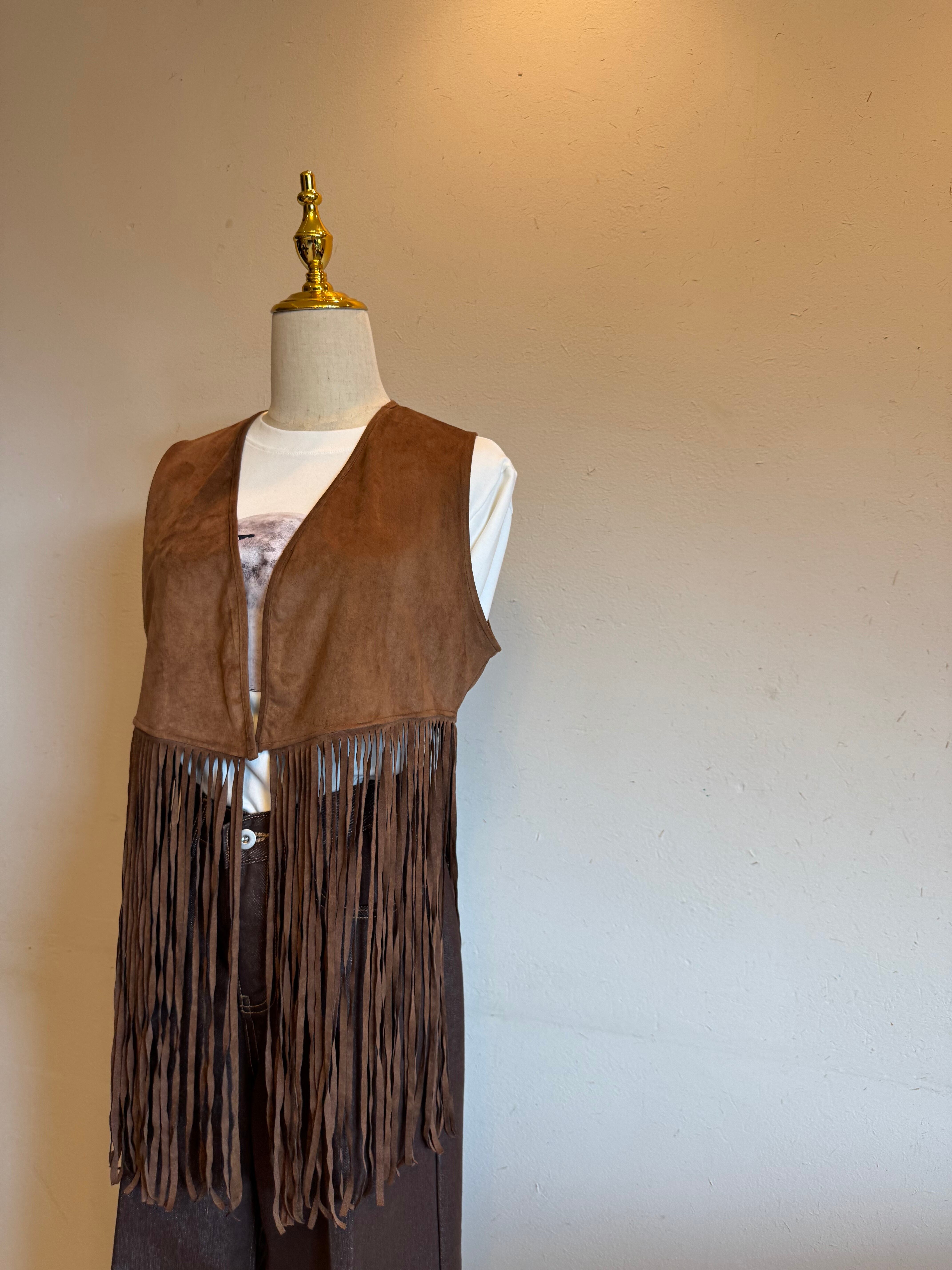 ヴィンテージ感とモード感を併せ持つフリンジベスト。