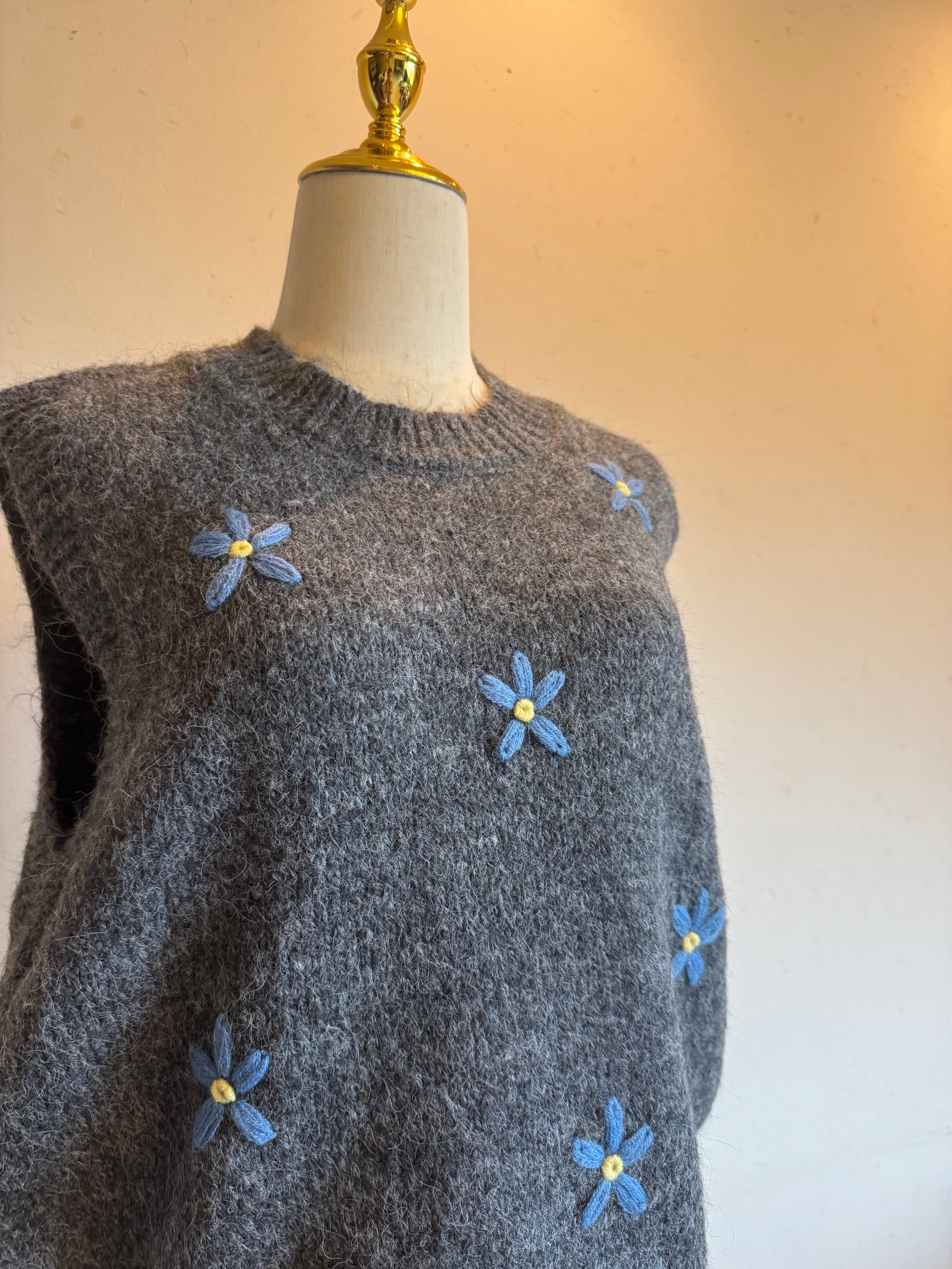 • 블루 플라워 자수 포인트 (옐로우 컬러 심 중심)