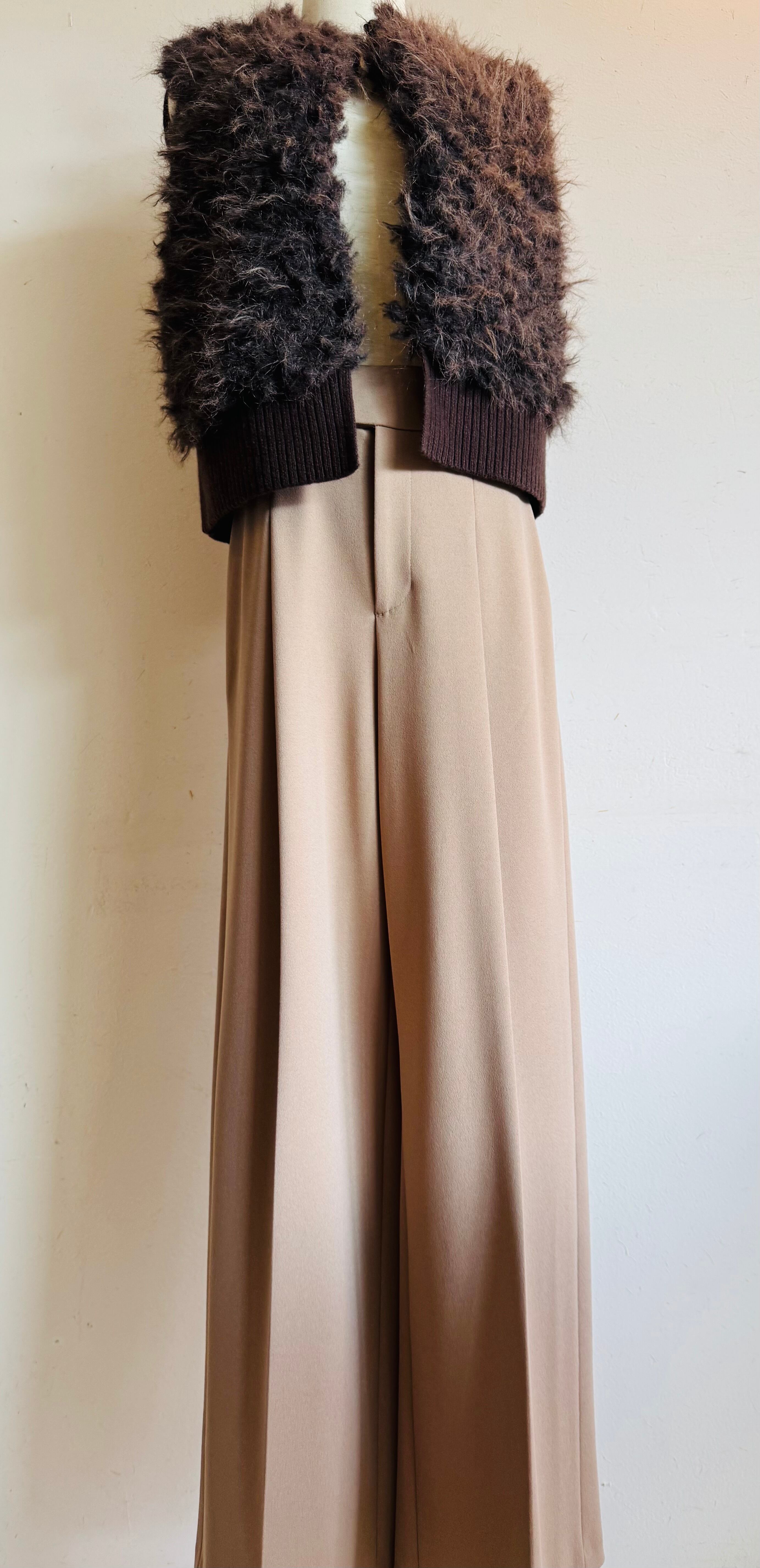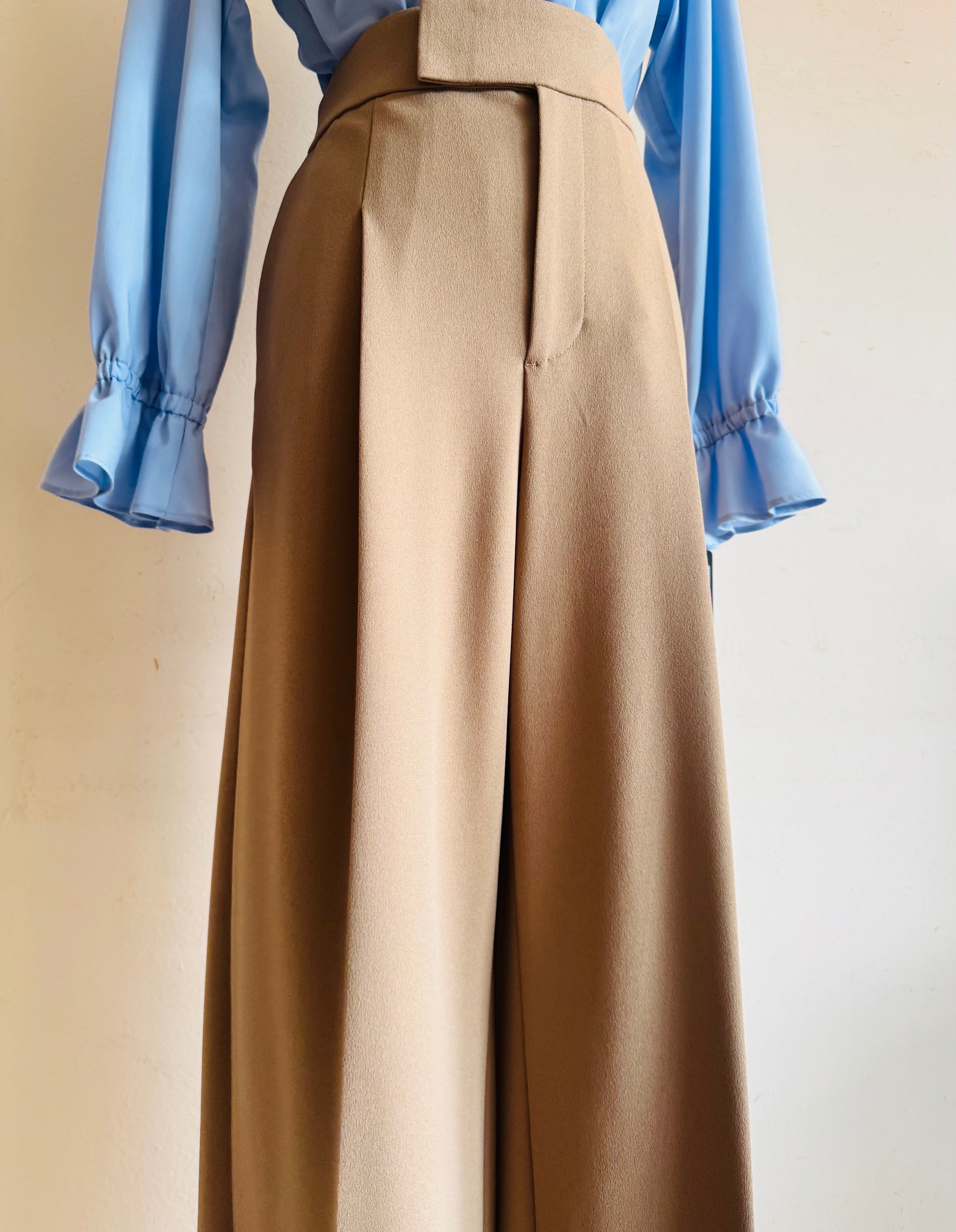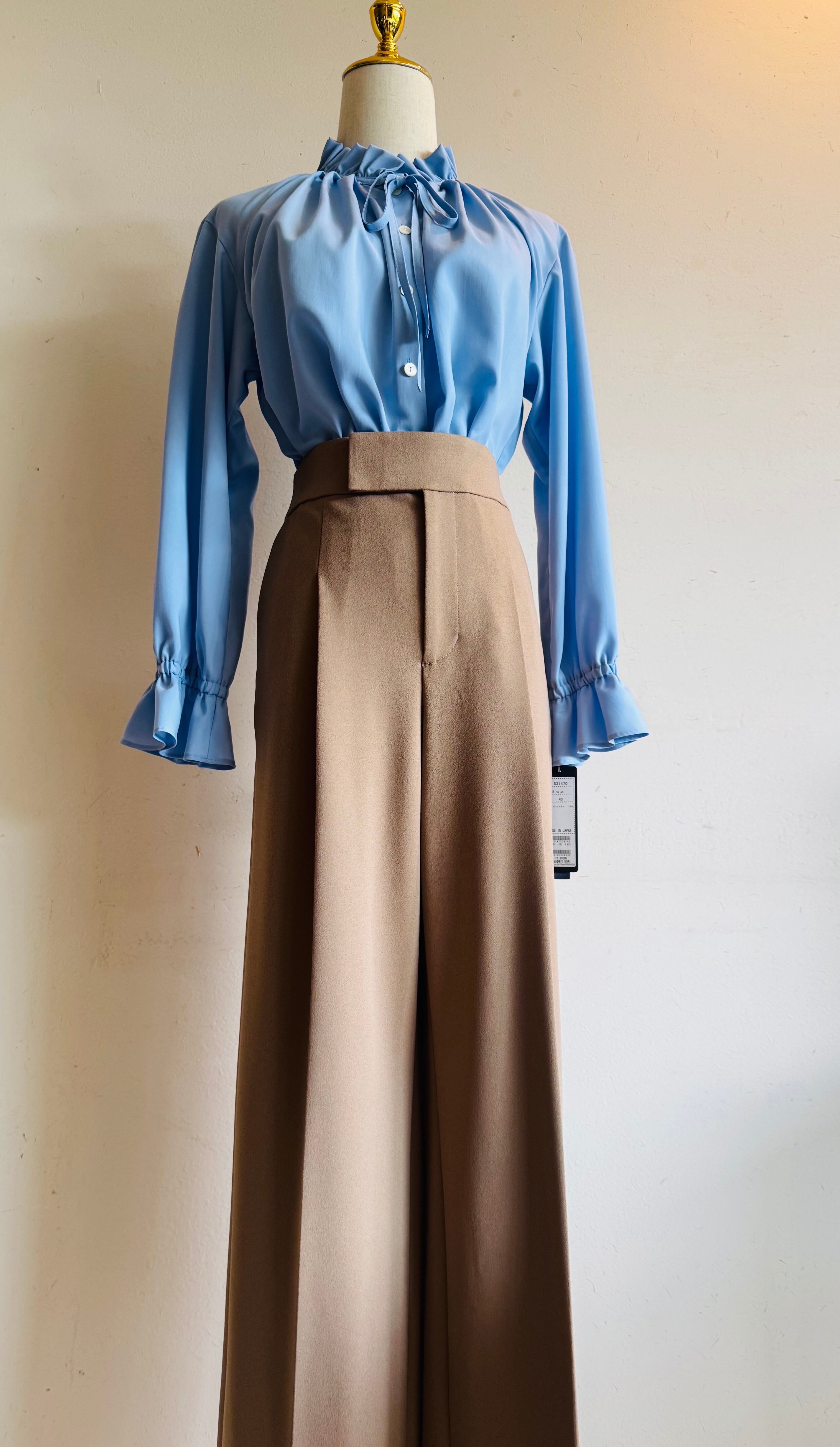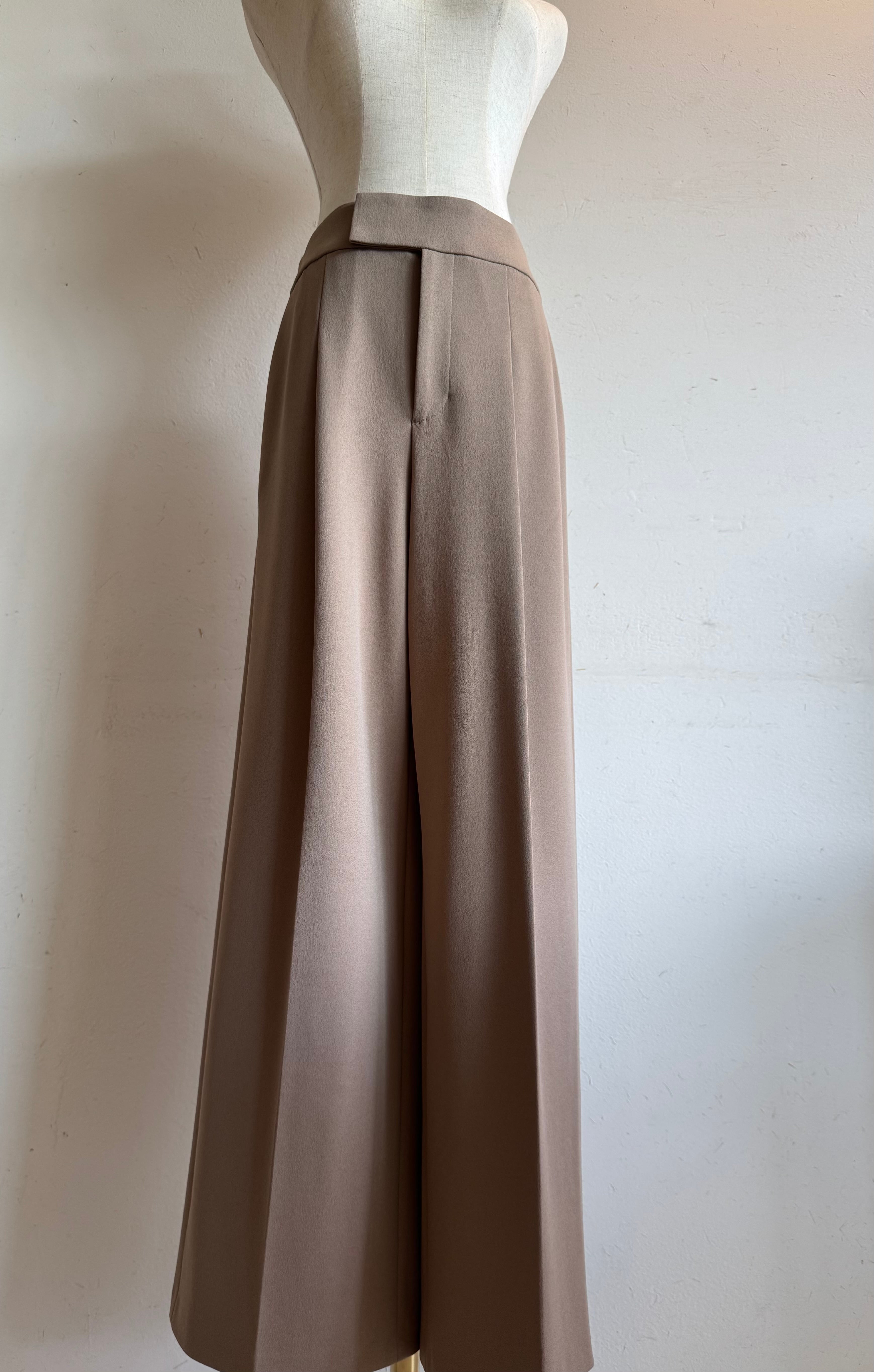 ポイント: ハイウエスト × ワイドプリーツで、脚長効果と快適な履き心地を同時に叶えるアイテム。
