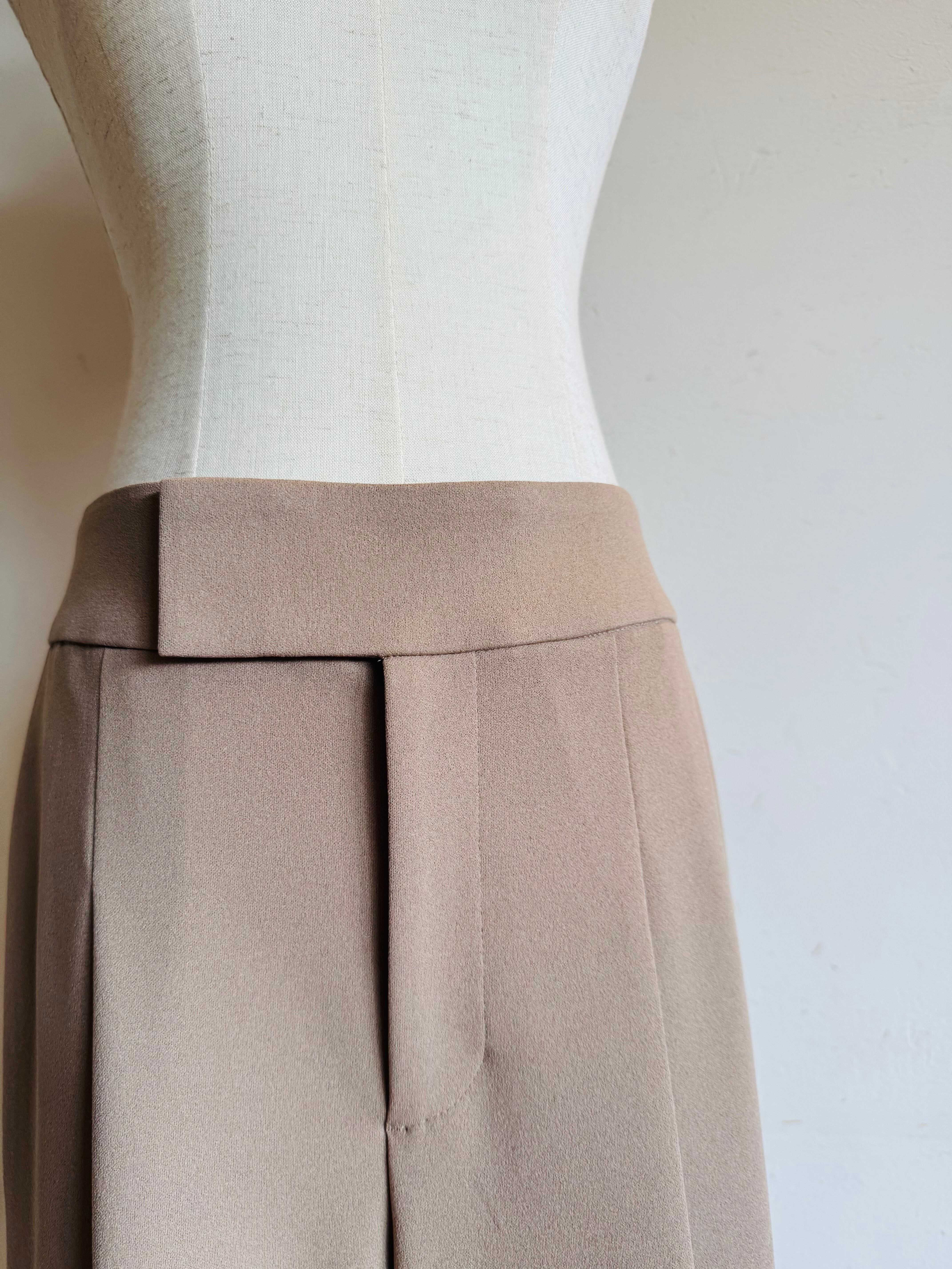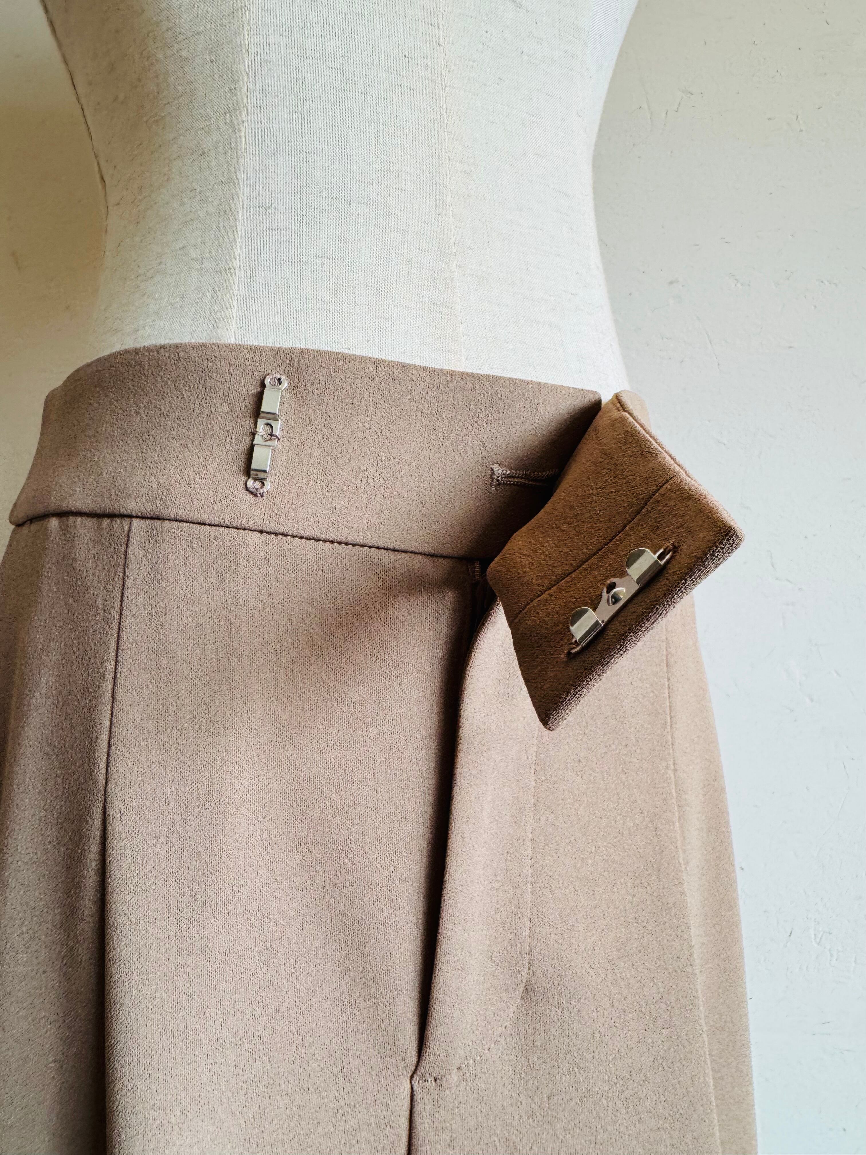 適度なハリ感のある生地を使用し、シルエットを美しくキープ。落ち着いたモカベージュカラーが洗練された印象を与えます。