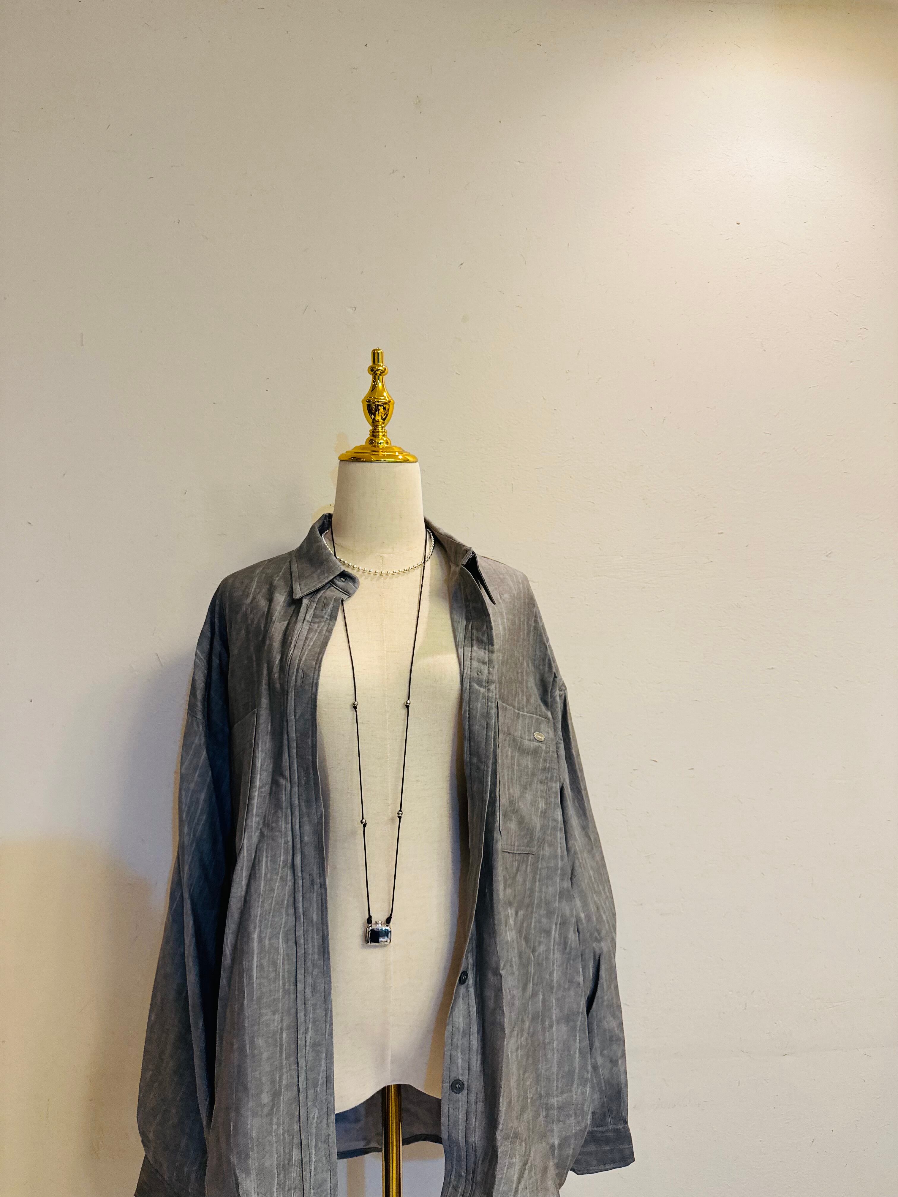 シワ加工 リネン風 ロングシャツ