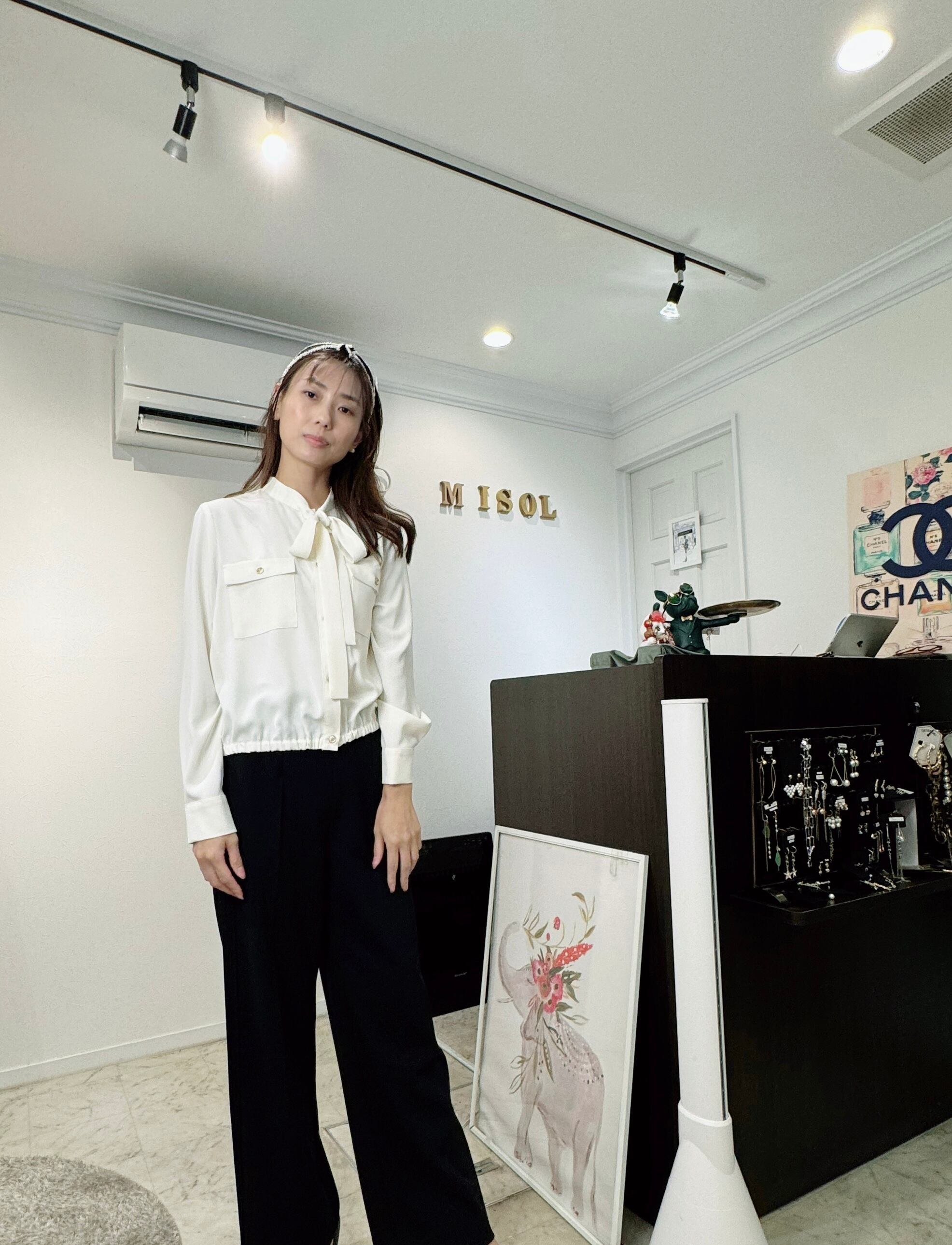 オフィスルックに最適な前ひもリボンブラウスが登場です!シンプルながらも洗練されたデザインが特徴で、ビジネスシーンでも女性らしい魅力を引き立てます。前ひもリボンがアクセントとなり、コーディネートに華やかさをプラスします。