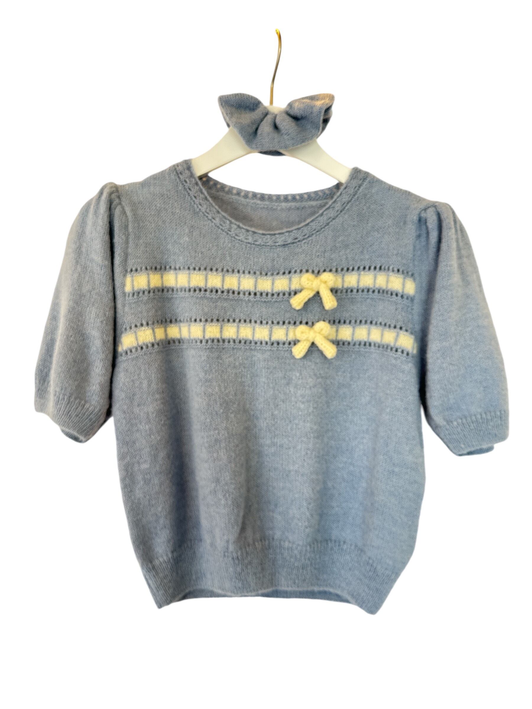 可愛いプロントリボン半袖セーター