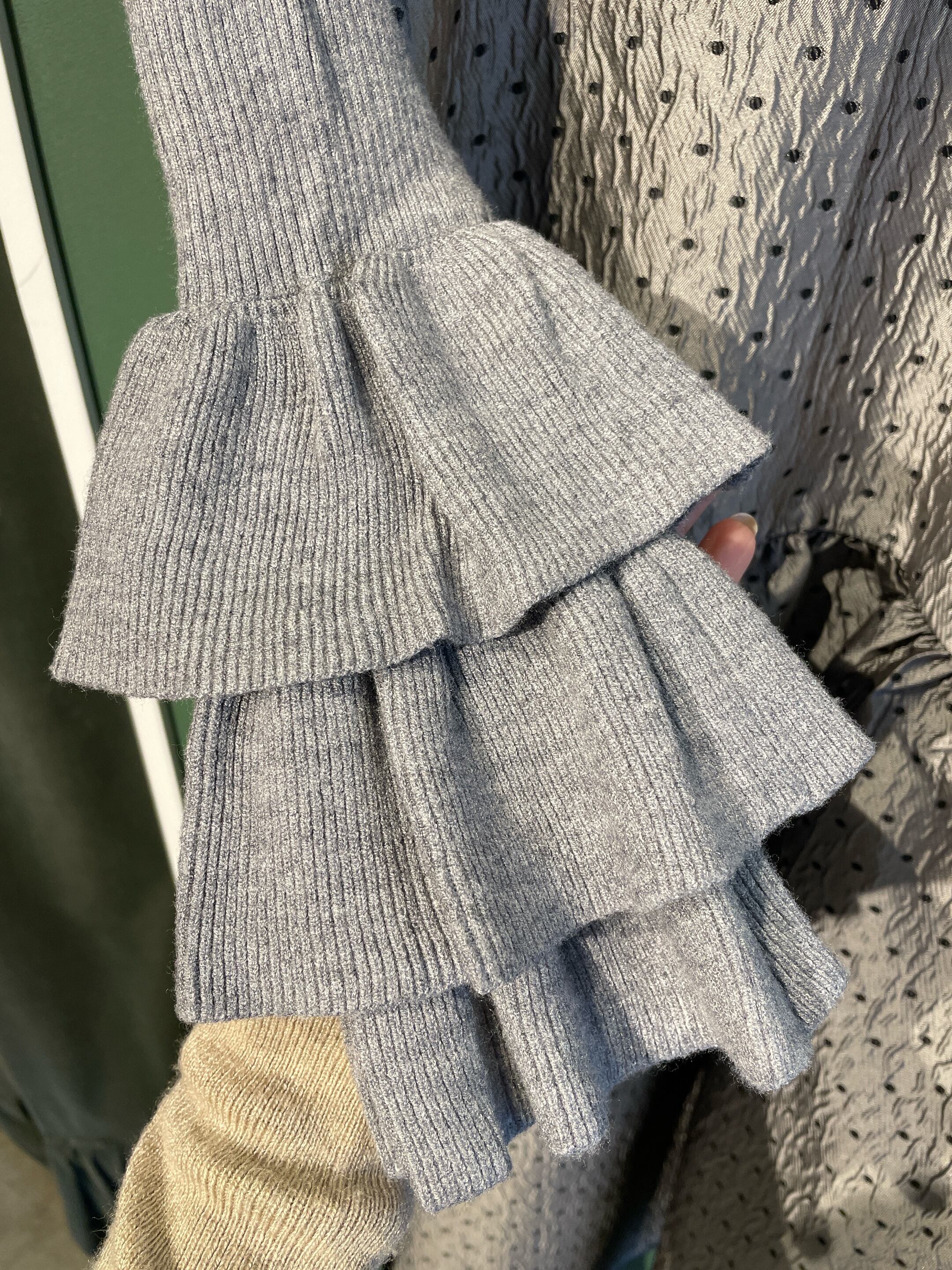 首元と手元のフリルがとっても可愛い、一味違うタートルネックニット