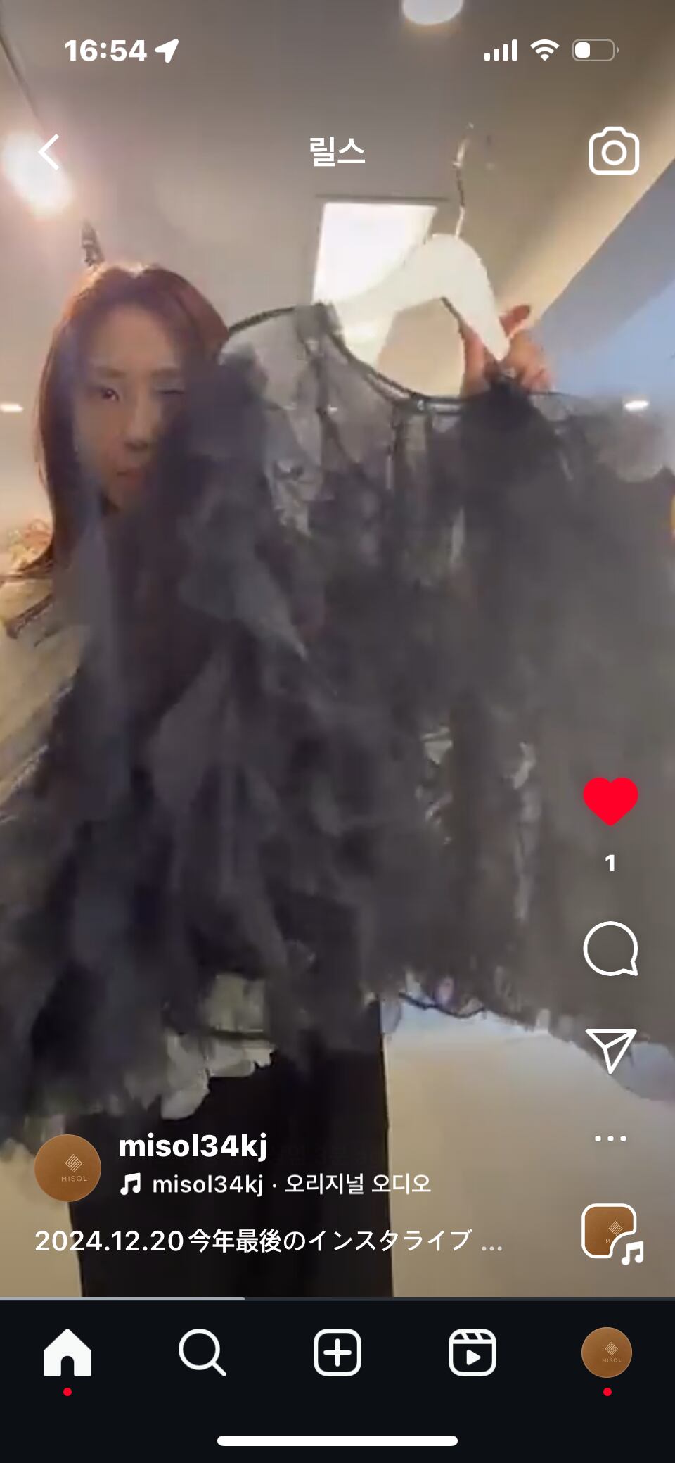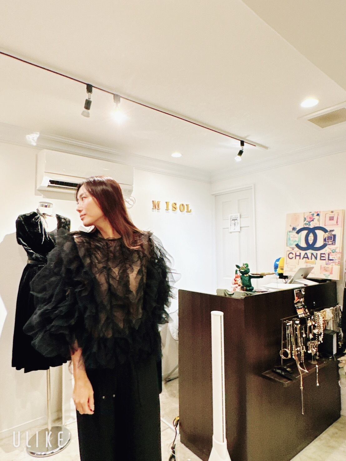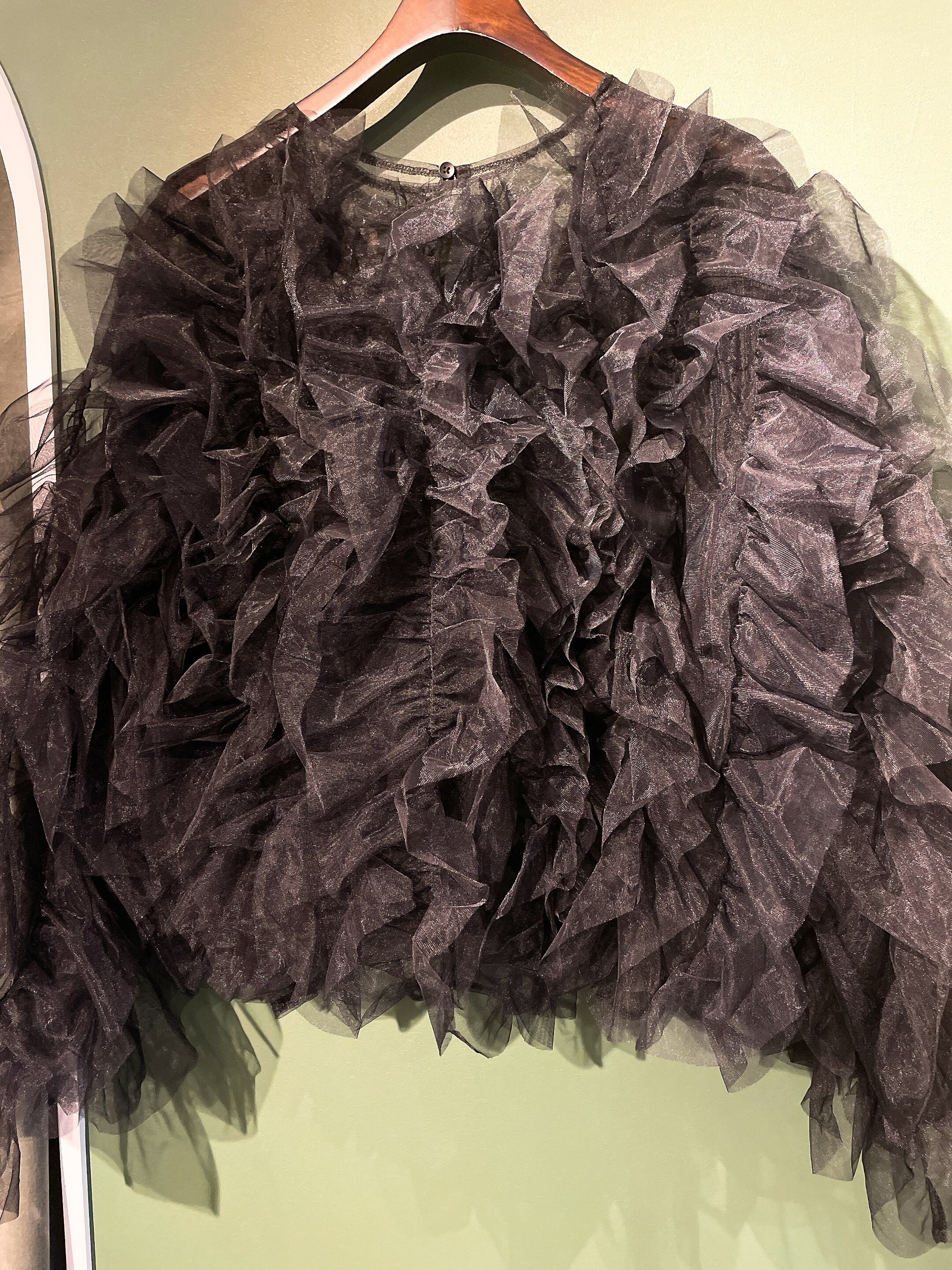 ボリュームのあるフリルが可愛い透け感のあるトップス。