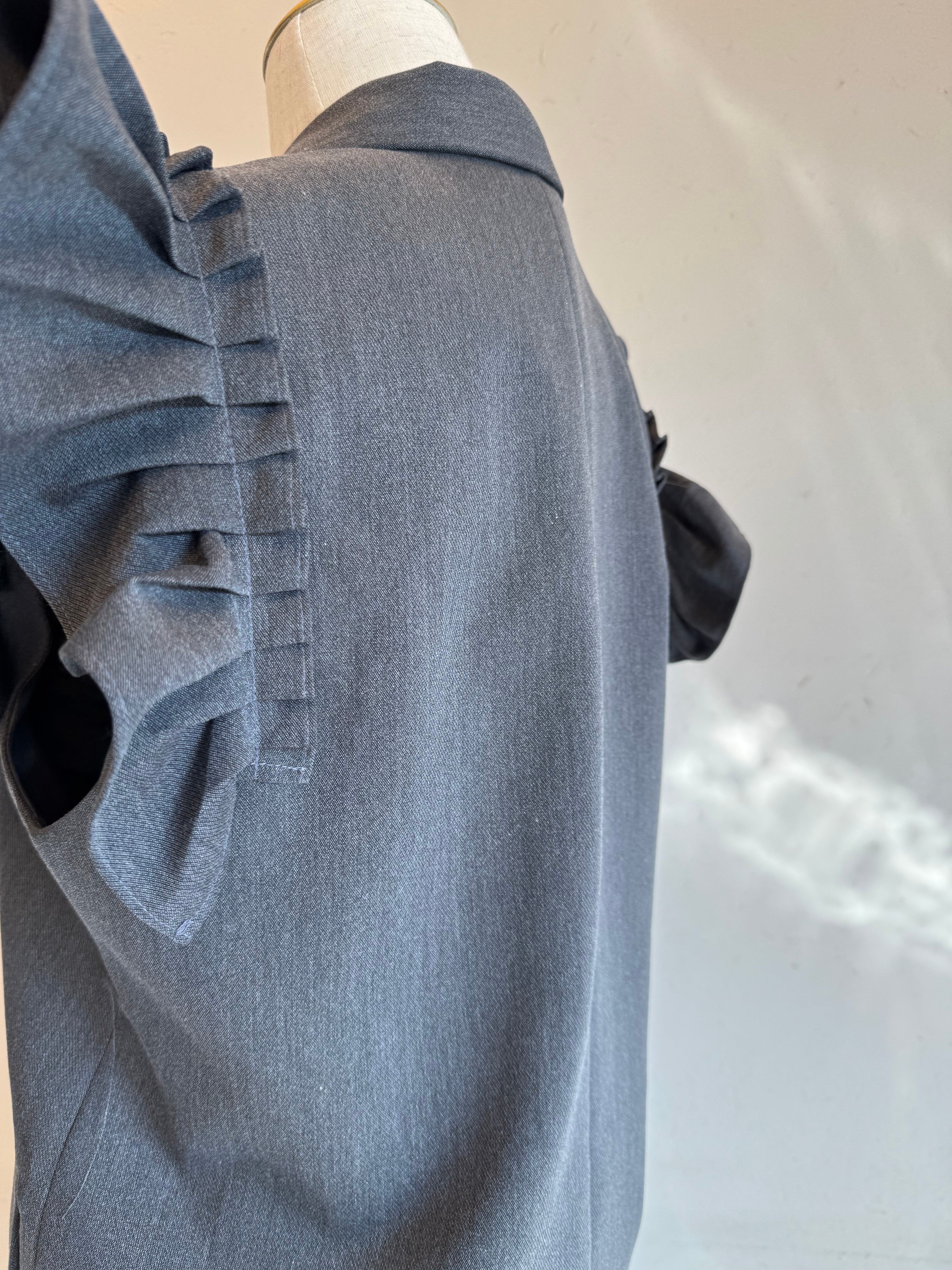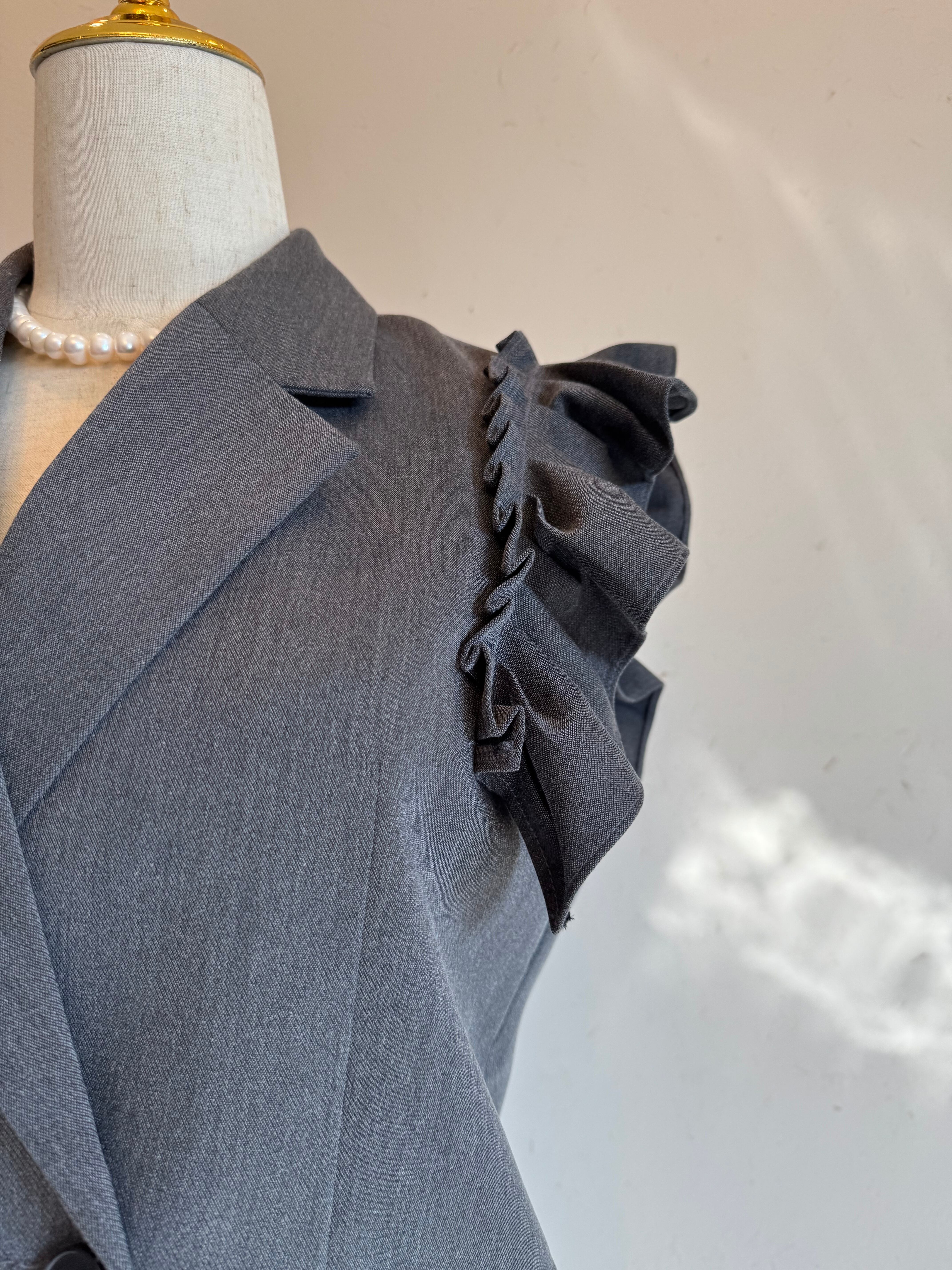 フリル スリーブ ダブル ボタン ノースリーブ ベスト ジャケット