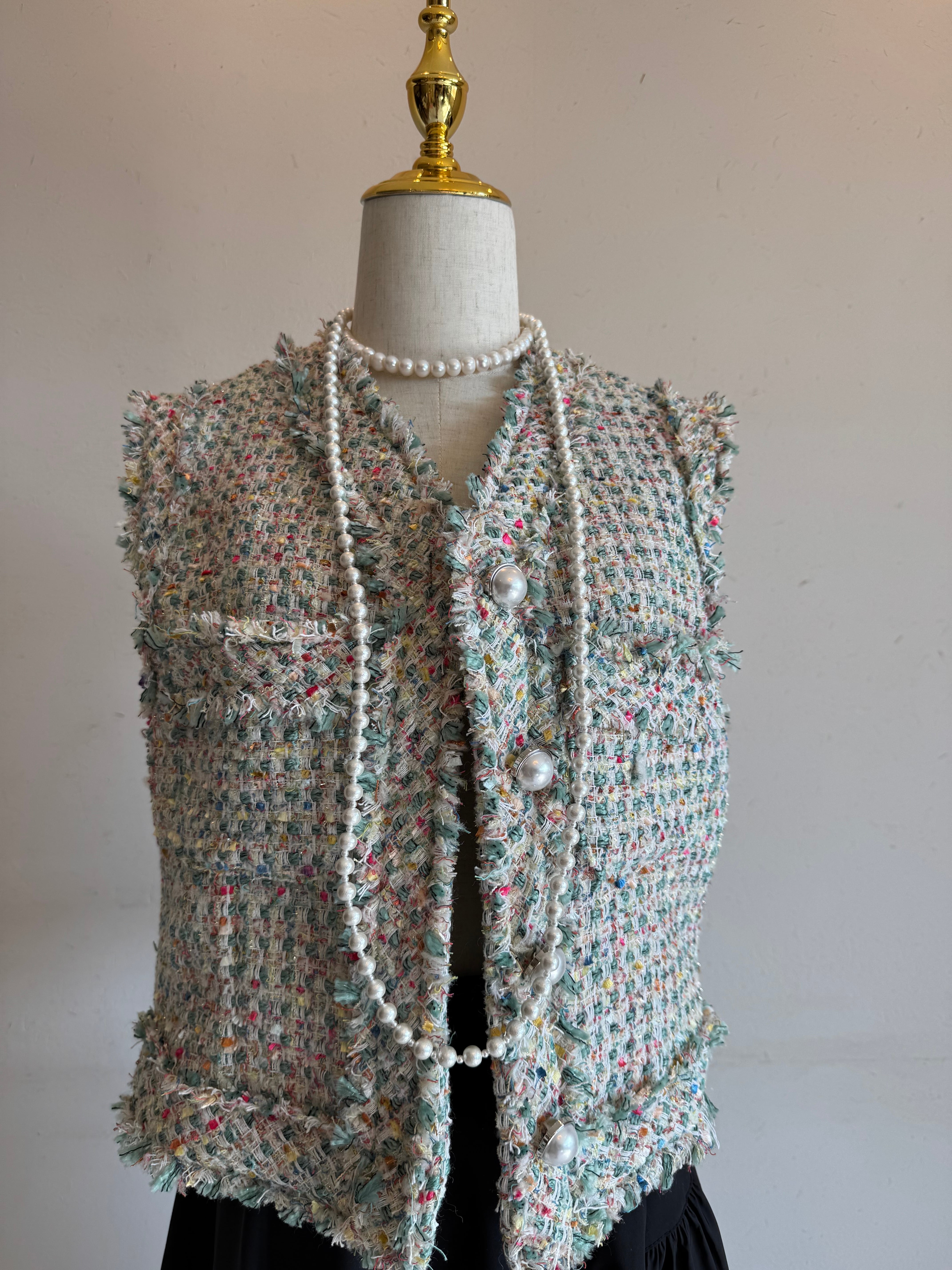 マルチマルチカラー·ツイード·ベストカラー·ツイードp·ベスト