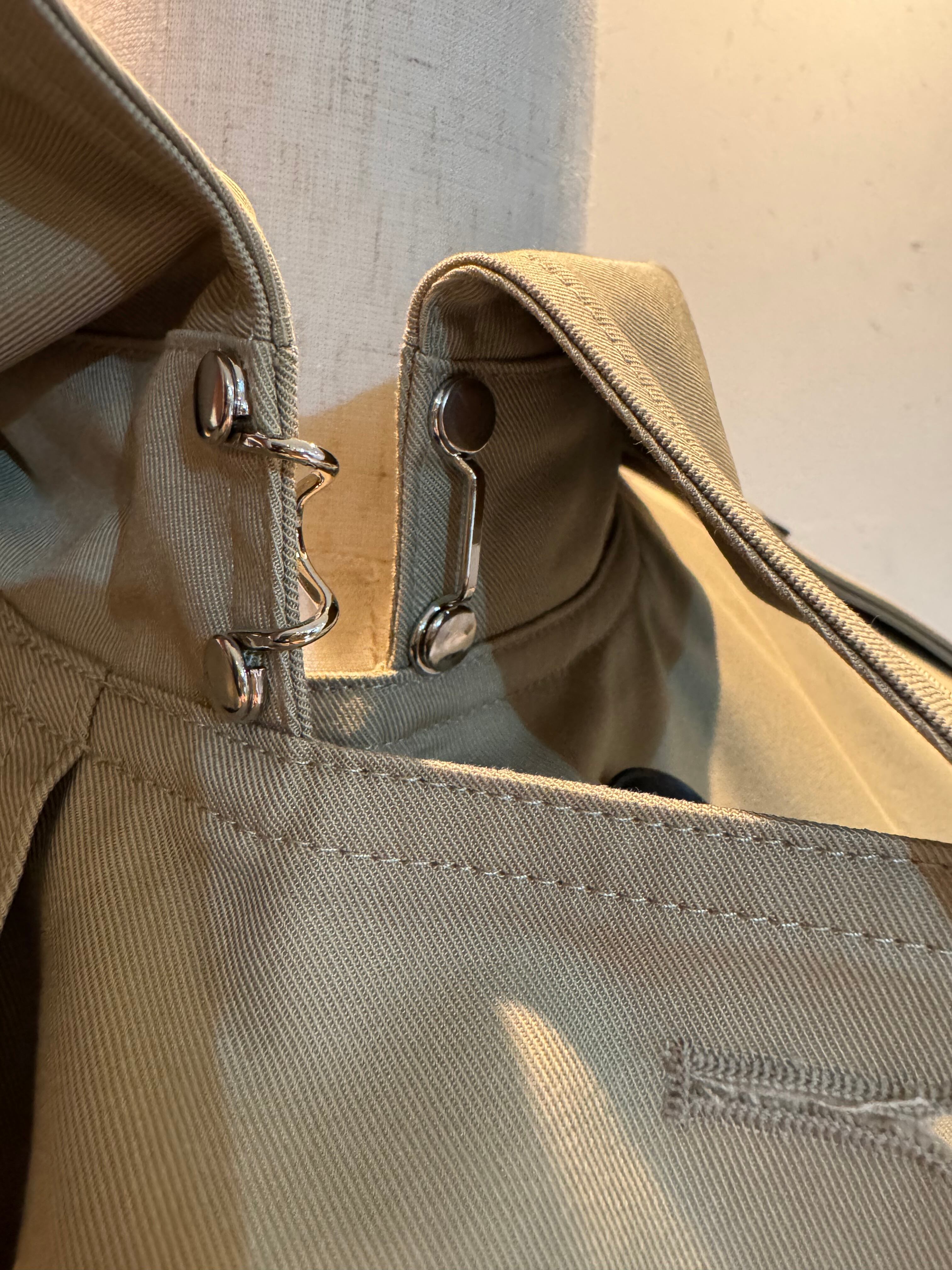 クラシックなトレンチコートのデザインをモダンに再解釈したベルテッドジャケットです。 ダブルボタンスタイルと肩章ディテールが引き立ち、パフスリーブが加わって優雅でありながらおしゃれなシルエットを演出します。 腰ベルトと袖ストラップがあり、フィットを調節することができ、女性らしいラインが強調できるアイテムです。 上品なベージュカラーで多彩なスタイリングが可能で、フォーマルなルックからカジュアルなスタイルまで幅広く活用できす。